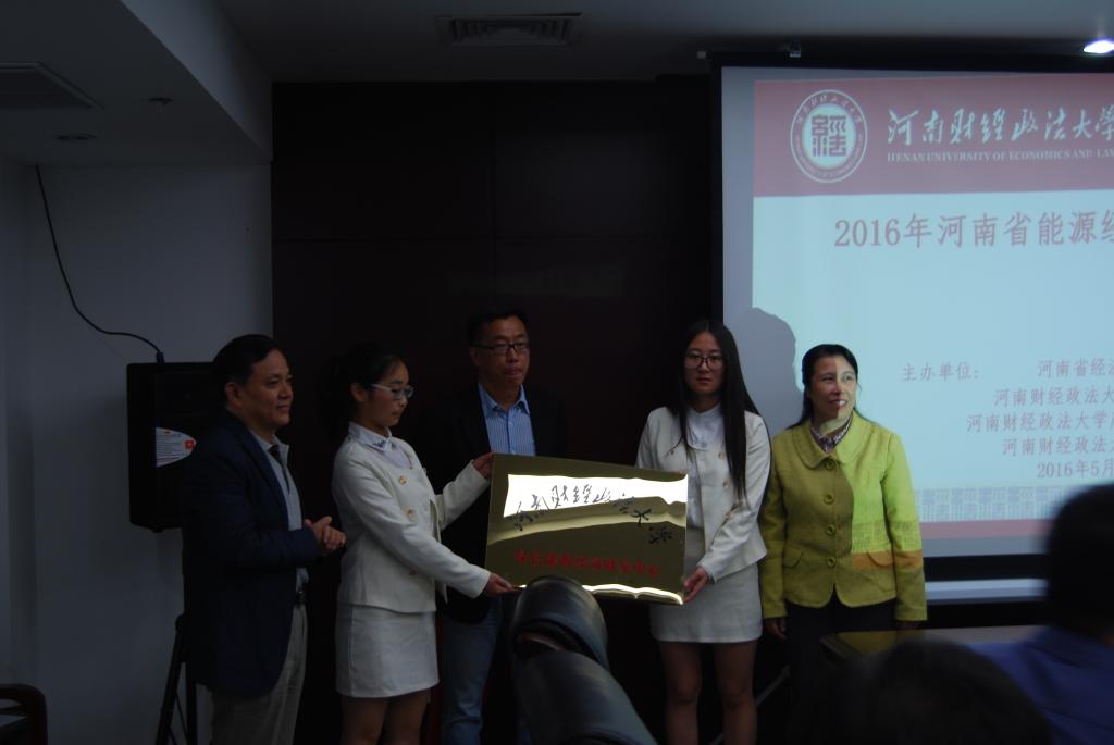 研讨会上,中石化华北油气分公司工程师杨占玄教授首先发言,他对河南省能源资源状况进行全面梳理,结合华北局企业实际运营中油气能源开采、能源运用与能源管理的实际情况进行分析,为绿色能源经济研究提供了实践源泉。河南省地质矿产勘查开发局财务资处郭付三处长以新能源为主线,分析了地热、页岩气等新能源的开发情况,并阐述了新能源的可再生、清洁、可持续等优点。河南油田工程咨询公司董事长史传坤博士论述了以“预算计划、投资计划、生产计划”三本计划融合为基础的国有企业科学考核制度设计理念,这是能源企业科学评价方法的宝贵探索。河南财经政法大学产业经济研究所刘美平所长以“五大发展理念引领河南能源经济转型”为题,从国家“十三五”规划中能源总量控制与能源丝绸之路建设角度阐述了河南能源经济结构转型升级的根据和途径。此外,河南工业大学经贸学院金融系主任副教授汪来喜博士、南阳师范学院经济管理系刘焕蕊博士、《中州学刊》杂志社第一编辑室主任邓小云副研究员、《区域经济评论》杂志社副社长刘昱洋副研究员也在会议上发了言。最后,由河南财经政法大学院长朱红恒教授、产业经济研究所所长刘美平教授、河南油田工程咨询公司董事长史传坤博士共同为“河南财经政法大学绿色能源经济研究中心”揭牌。