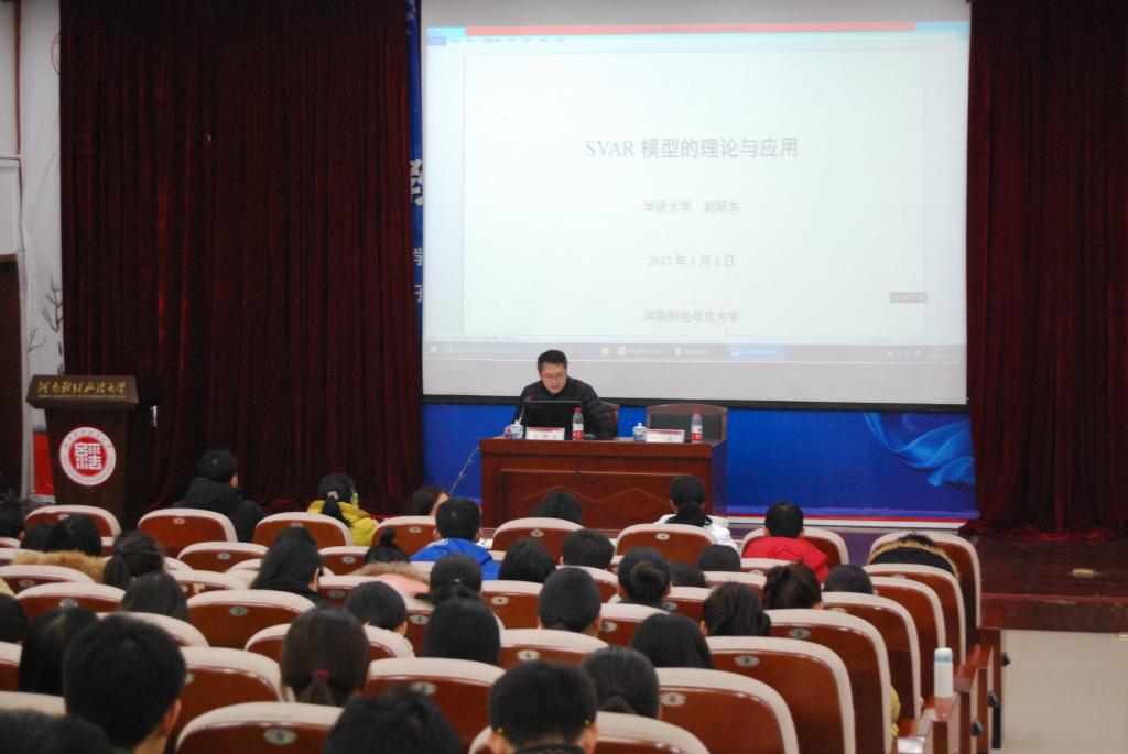 1月12日上午九点,应我校科研处和国产成人精品邀请,华侨大学社会科学研究处处长赵昕东莅临我校,在郑东校区第一教学楼220报告厅作主题为“SVAR模型的理论与应用”的学术报告。科研处副处长叶光、学校老师和学生共400余人参加本次报告会。