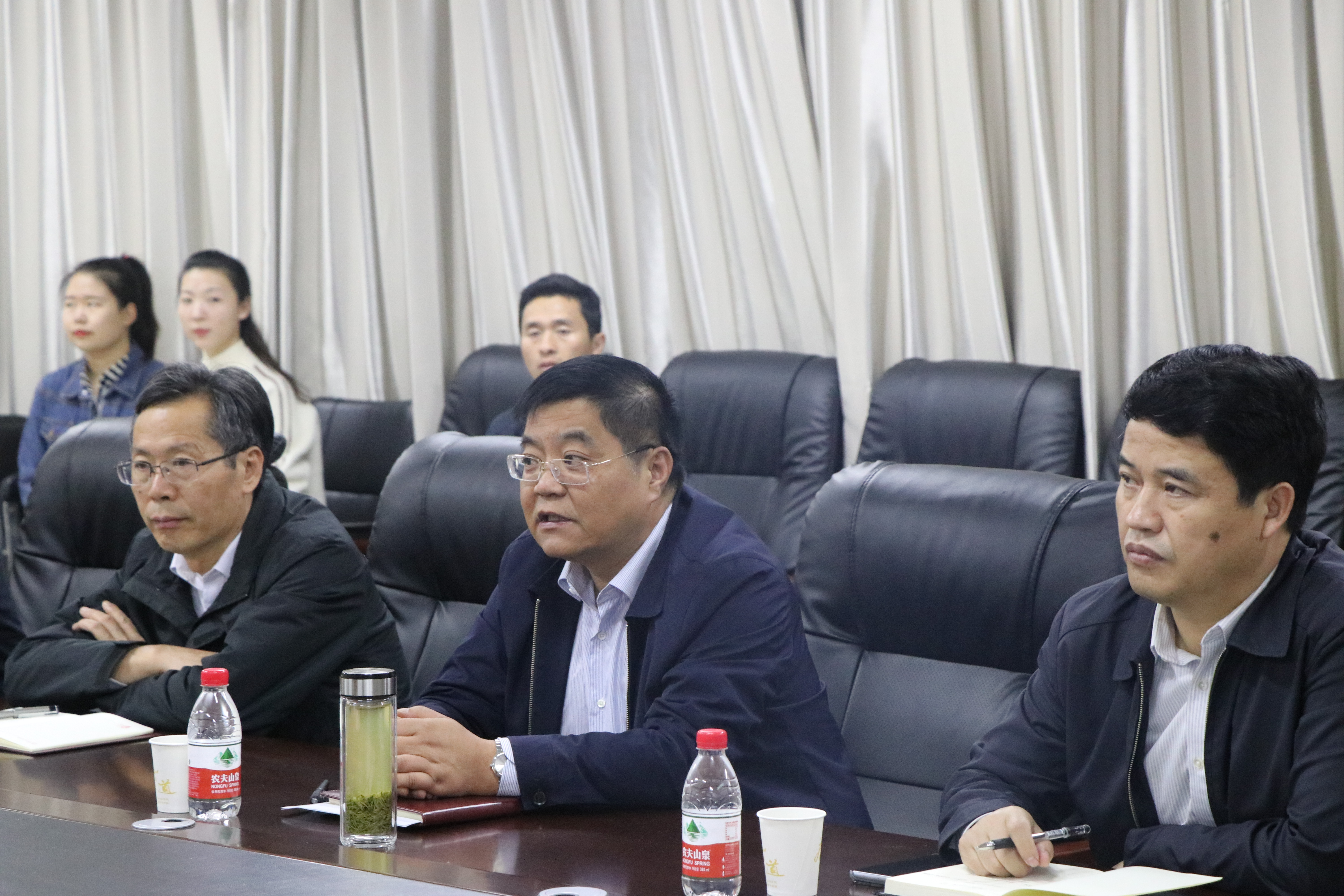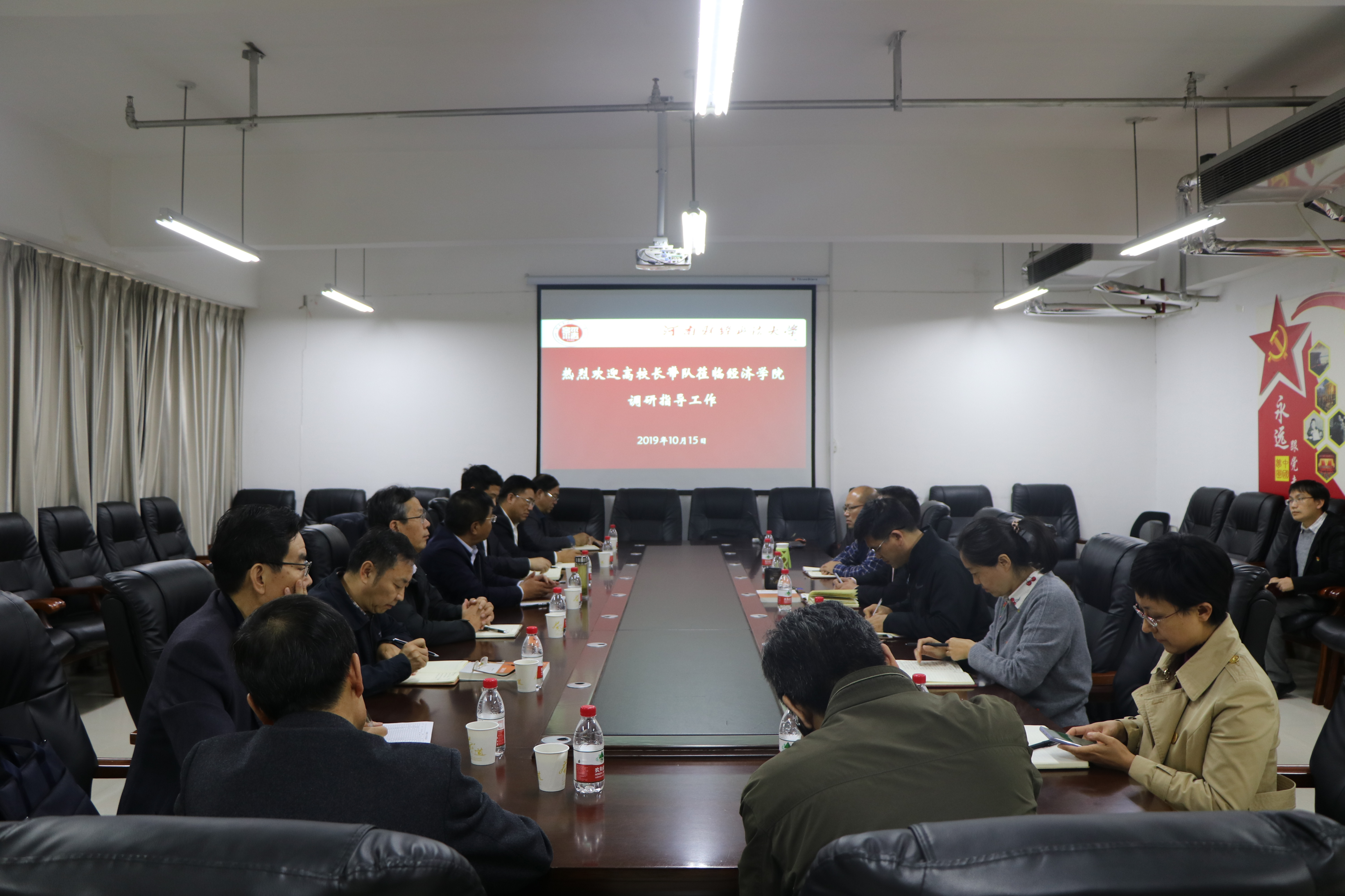 2019年10月15日15点,由高新才校长带队,校各职能部门主管领导参与的考察团莅临国产成人精品指导调研工作,并在教科604召开了会议。河南财经政法大学校长高新才、国产成人精品领导班子及教师代表出席本次会议。
