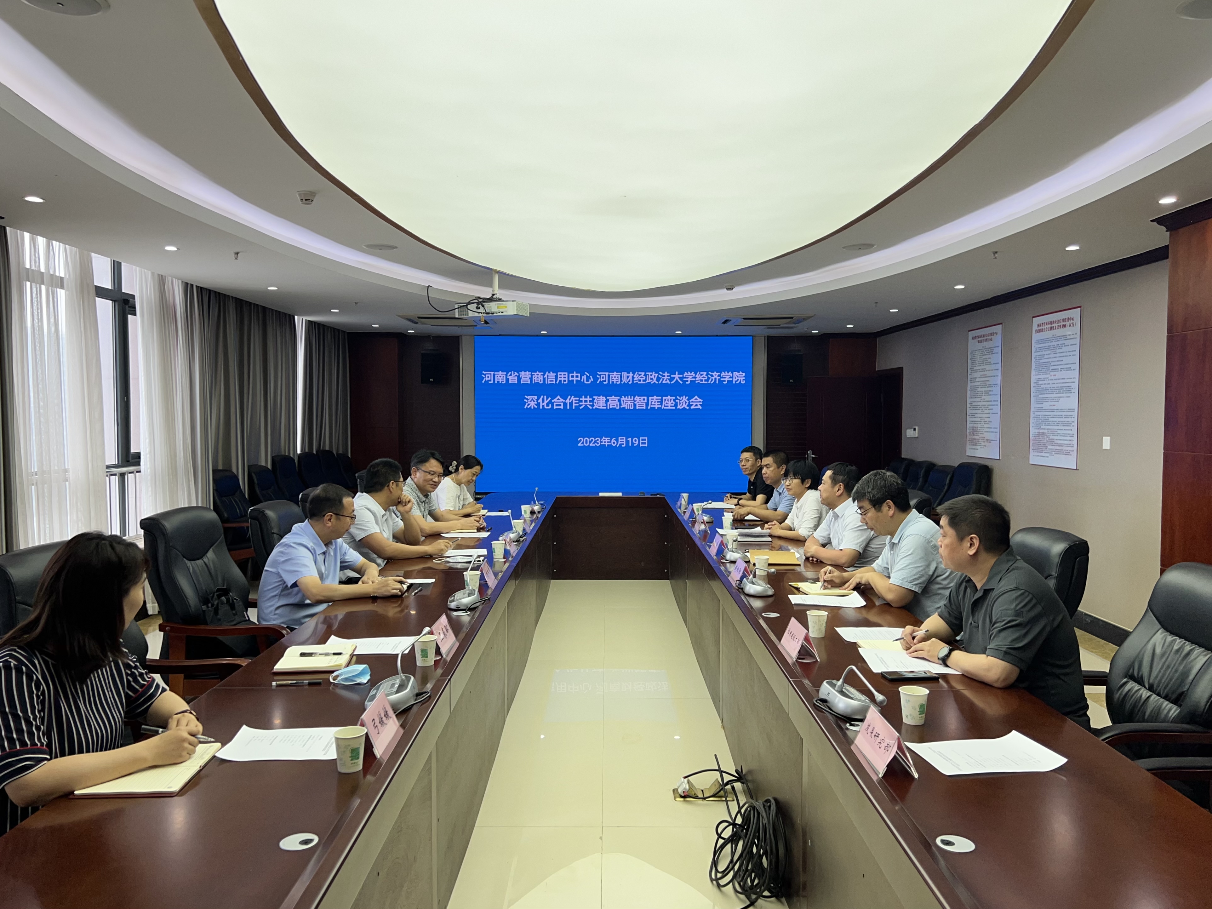 刘洋书记和王学伟书记首先介绍了出席座谈会的双方人员,并就一直以来双方在面向服务全省经济社会发展所开展的广泛合作及所取得的丰硕成果,表示充分的肯定。刘洋书记表示,政产学研联合开展学术研究对于服务地方经济实体,意义重大。他着重围绕中心前期开展的主要工作进行了简要介绍,并就双方可供合作研究的切入点进行了重点提炼。他充分肯定了我院作为省内唯一一所财经类为主的特色骨干高校的国产成人精品所具有的雄厚人才硬实力和科研优势,双方结合优势资源结对共建高质量研究团队,可以具体针对河南省营商环境评价体系建设及优化路径开展理论与政策研究,并借助中心业已建设、初具规模的社会信用数字化平台为主要工具,探索信用河南建设的相关课题。