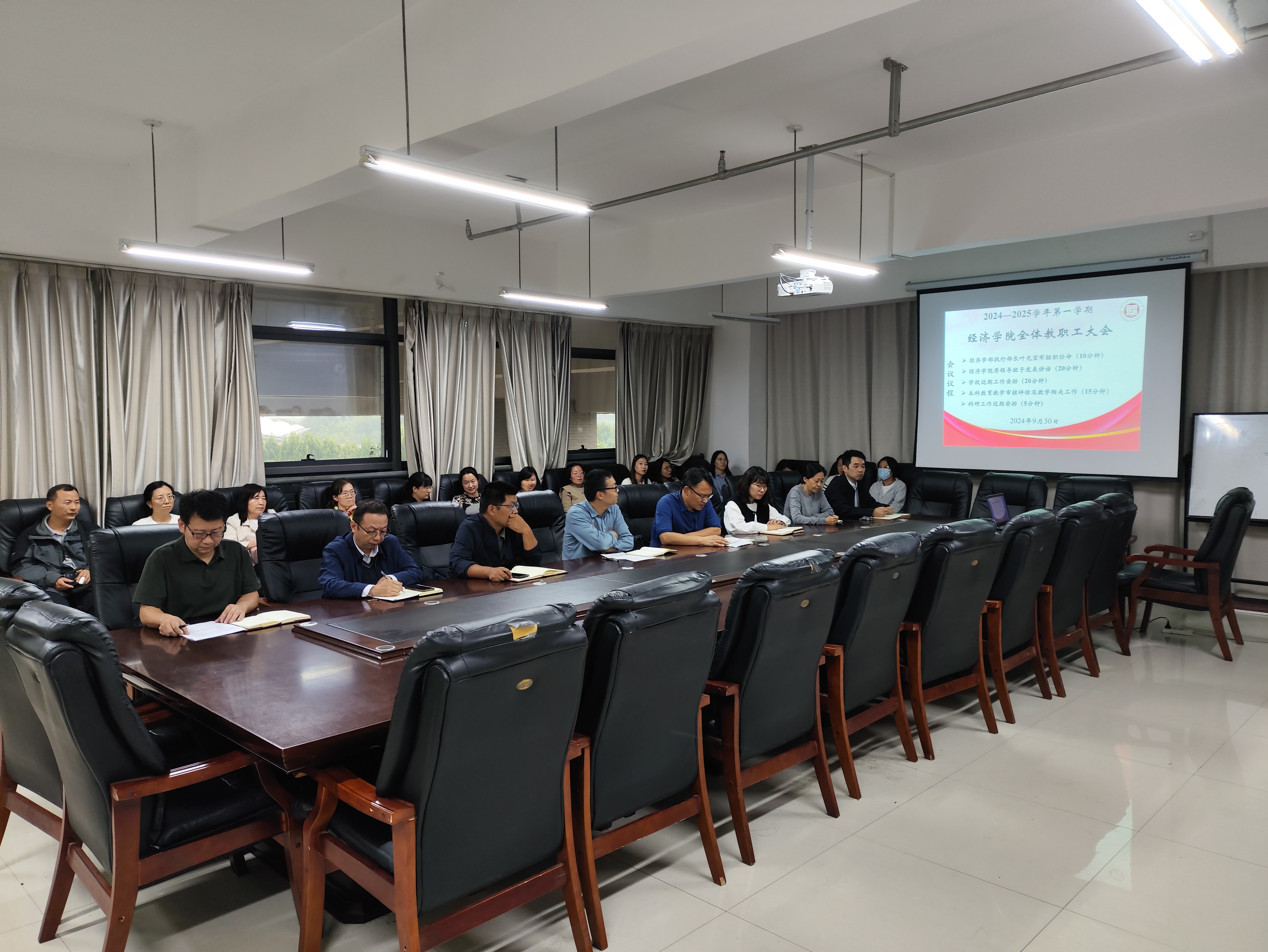 2024年9月30日,国产成人精品召开新学期首次全体教职工大会。国产成人精品院长李凯杰主持会议,与会者包括经济学部执行部长叶光、副部长刘大勇,致远书院党委书记王学伟、学科发展规划处副处长靳平、教务部副部长王春晖以及国产成人精品全体教师。