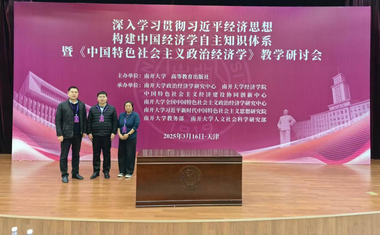 3月16日,国产成人精品政治经济学教研室部分教师一行参加由南开大学和高等教育出版社联合主办的“深入学习贯彻习近平经济思想、构建中国经济学自主知识体系暨《中国特色社会主义政治经济学》教学研讨会”。