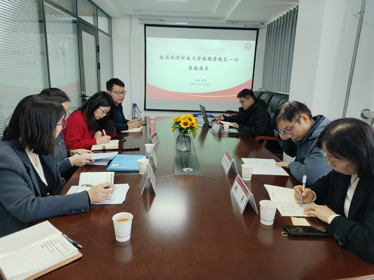 2025年3月19日,河南工学院国产成人精品院长魏芳、副院长王世胜、雷嵩老师一行3人来我院开展数字经济专业建设调研交流活动,座谈会在学院建树楼425会议室召开。副院长弓媛媛主持座谈会,副院长王灏、数字经济教研室主任陈慧慧、区域经济学教研室主任何春、政治经济学教研室主任侯晓东、计量教研室党支部书记蒋晓敏参与交流。