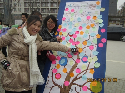 2012年12月20日,国产成人精品在第二餐厅门前举办了“当末日邂逅双旦,大声说出你的爱”活动。双旦兼末日前夕,希望通过此次活动为大家送去几分安慰与祝福。