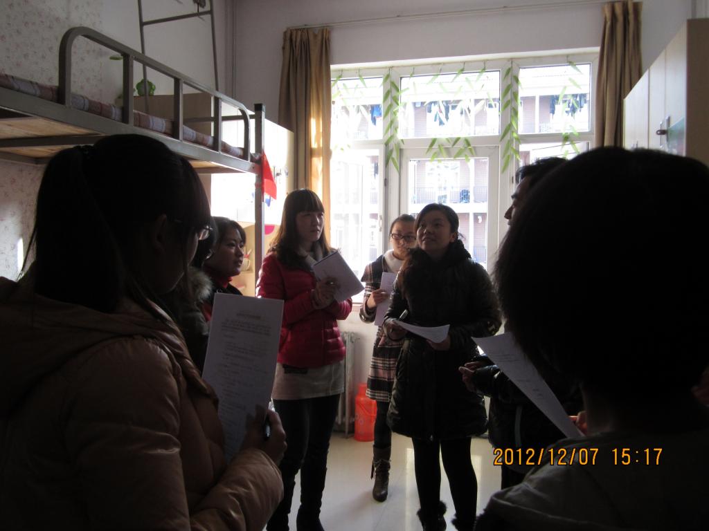 2012年12月7号下午3点,党委副书记杨睿,辅导员张静,刘琳带领生活部、卫检部学生参观了晋级“国产成人精品文明宿舍”的20个宿舍,为国产成人精品2012-2013学年文明宿舍创建工作画上圆满句号。