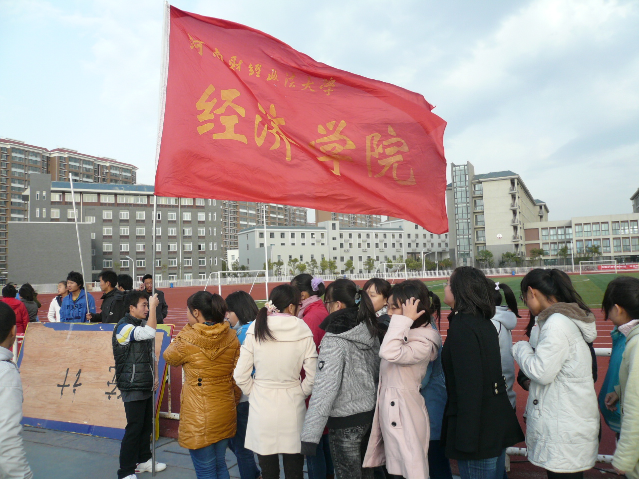 2012年11月10日,由河南财经政法大学举办的新生运动会拉开了帷幕。国旗班踏着威严整齐的步伐迎来了国旗,同学们饱含热情地期待着体育健儿一展英姿。开幕式上,运动员依次入场,新生代表进行讲话,冬季阳光体育长跑运动正式开始。