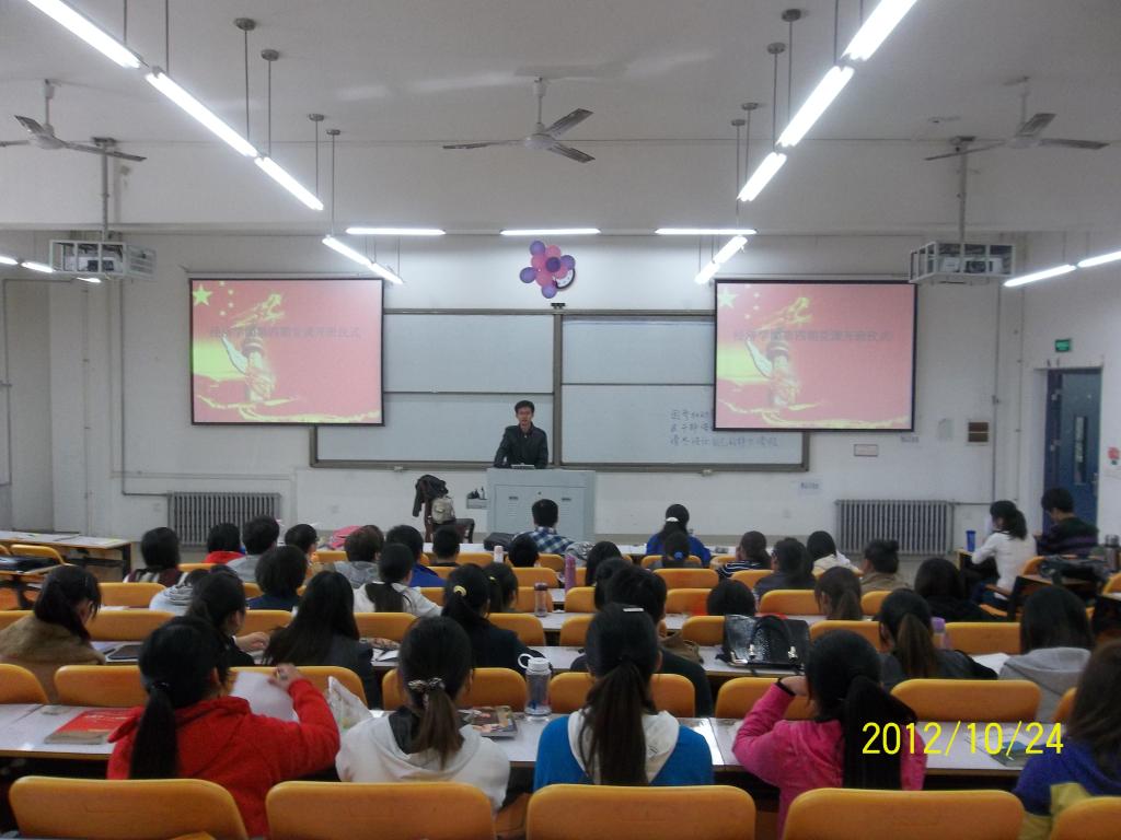 2012年10月24日中午十二点半,国产成人精品第四期入党积极分子培训班在教二117举行开班仪式。国产成人精品党委书记孙向东、党委副书记杨睿、团总支书记宋斌斌老师出席了此次开班仪式。仪式由宋斌斌老师主持,整个会场秩序井然。