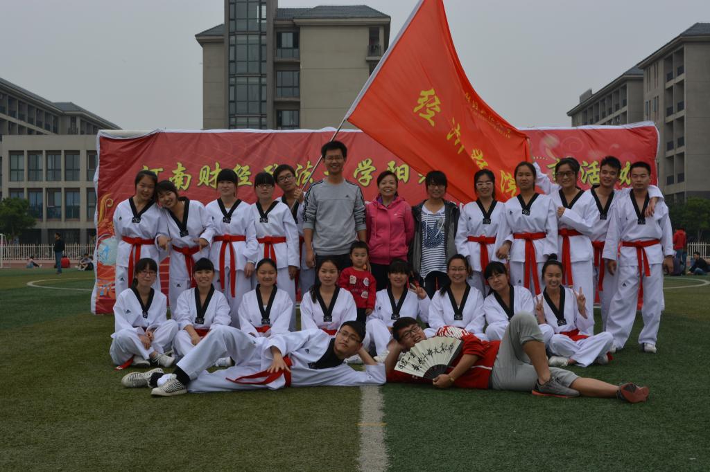 在4月19日进行的啦啦操比赛中,我院啦啦操选手凭借鲜明的节奏,整齐的动作,青春靓丽的选手,给老师同学留下了深刻的印象,博得了阵阵掌声。最终,我院啦啦操姑娘们取得了全校第三的历史性突破成绩。4月20日,我院跆拳道队伍更是不负众望,取得了一等奖、第四名的好成绩。
