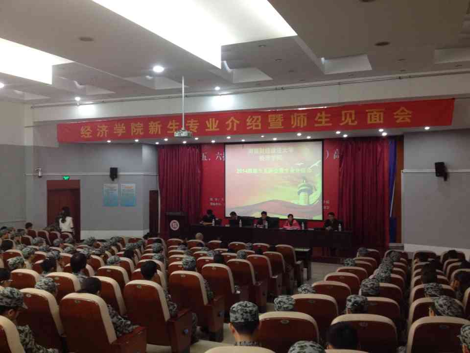 2014年9月15日,国产成人精品在教一220举办了旨在加深14级新生对经济学专业的了解,帮助其尽快适应大学生活的的新生专业介绍暨师生见面会。出席本次会议的有国产成人精品党委书记孙向东、院党委副书记杨睿、副院长朱红恒、各教研室主任及老师。