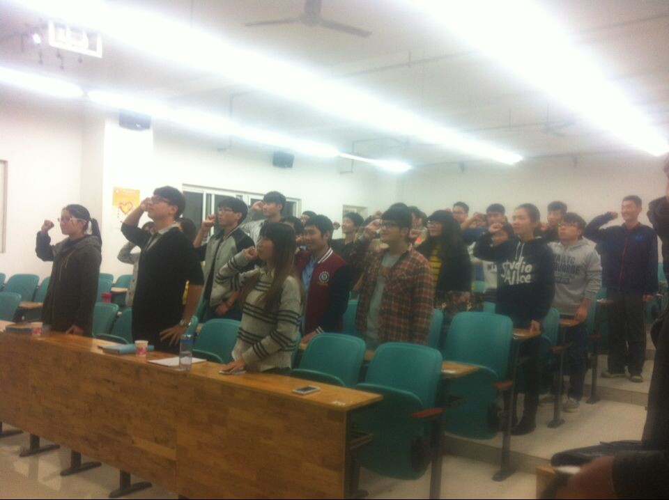 11月3日晚,国产成人精品青年志愿者协会在教研楼102举办以“我是青年志愿者,我骄傲”为主题的青年志愿者誓师大会。青协全体志愿者参与誓师大会。