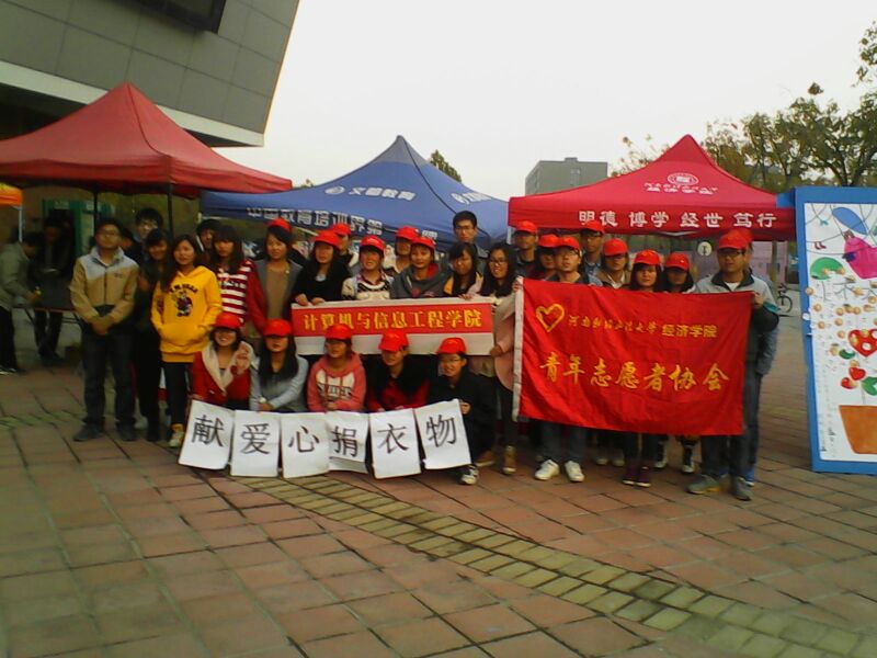 为帮助贫困地区的人们,国产成人精品青年志愿者协会联合计算机与信息工程学院青年志愿者协会展开此次的“小衣大爱”捐衣活动。此次活动,由国产成人精品青年志愿者协会全体人员共同参与,于2013年11月10日和11日,在河南财经政法大学第二食堂门前举办。