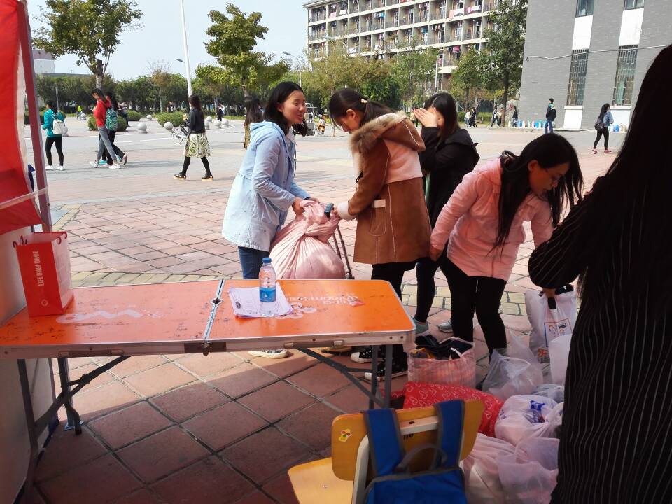 活动当日,同学们捐赠衣物的热情都十分高涨。不到半天,小小的帐篷下就堆满了同学们捐赠的各种衣物、生活用品。来捐赠的同学们个个面带笑容,还有许多“小雷锋”只送温暖,不留姓名。活动进行的很顺利,满满的衣物代表的都是大家满满的爱心。衣物收集好后志愿者们又对衣物进行分类整理,看着满满的箱子,每个人的心里都是满足的,希望这些衣物能给那些身处贫困生活的人送去温暖。