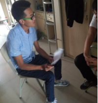 活动选在寝室进行,采访过程中面对来自不同地区的贫困生,采访人员积极耐心的询问着他们的现实情况和遇到的各种问题。贫困生们很感激这次采访,他们很感谢陪伴在她身边地人并且表示以后的生活里会以更加积极向上的态度去面对困难和挑战。采访中发现这些贫困生虽然家庭拮据,但他们每个人都坚强勇敢学习刻苦努力,成绩优异,是大家学习的榜样。采访在大家的再见声中宣告结束。