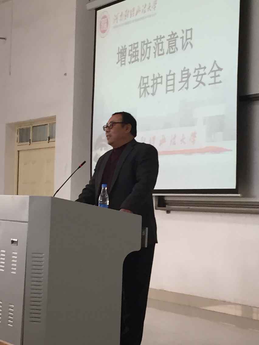 大会开始,保卫处处长魏保平老师向同学们详细讲述了关于“出行、饮食、消防、防盗、防骗、防传销、防毒品、遵纪守法”八大方面的安全问题。并举了一些本校和其它高校曾出现过的安全事故的例子,以此来提高同学们的警戒性,并使同学们认识到了生命的珍贵。魏老师对安全问题全面而又生动的讲解,使在座的同学们都感慨万分,切实感受到了安全的重要性。