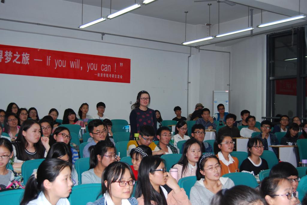 4月19日晚,国产成人精品在教一218举办了以“Duang,考研驾到”为主题的考研经验分享会。分享会邀请到国产成人精品副院长刘方及学院考上央财、西南财经、东北财经的学长学姐为嘉宾,学院各年级意向考研的同学积极参与此次交流会。