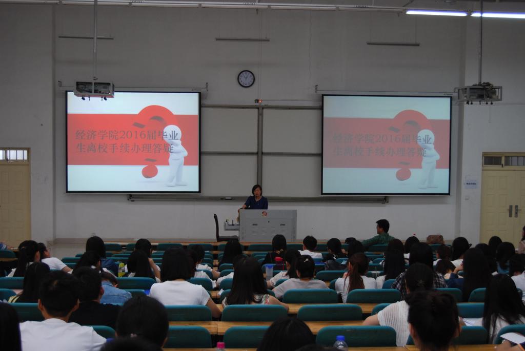 动员会上,李洪玲向毕业生详细介绍了毕业生离校手续办理问题,包括不同就业类型学生的报到证办理、档案转接,并结合往届毕业生的实际案例,叮嘱毕业生重视自己的档案管理问题。刘昆峰以“安全离校、文明离校、和谐离校”为主题,强调了毕业生聚餐、旅游中的问题,并倡导毕业生给写学弟学妹写一封信、与老师打一场师生排球赛等活动,提升毕业生文明离校的意识。最后,张静就离校相关注意事项和具体工作安排作出详细解答。在座毕业生认真倾听,并积极提问。