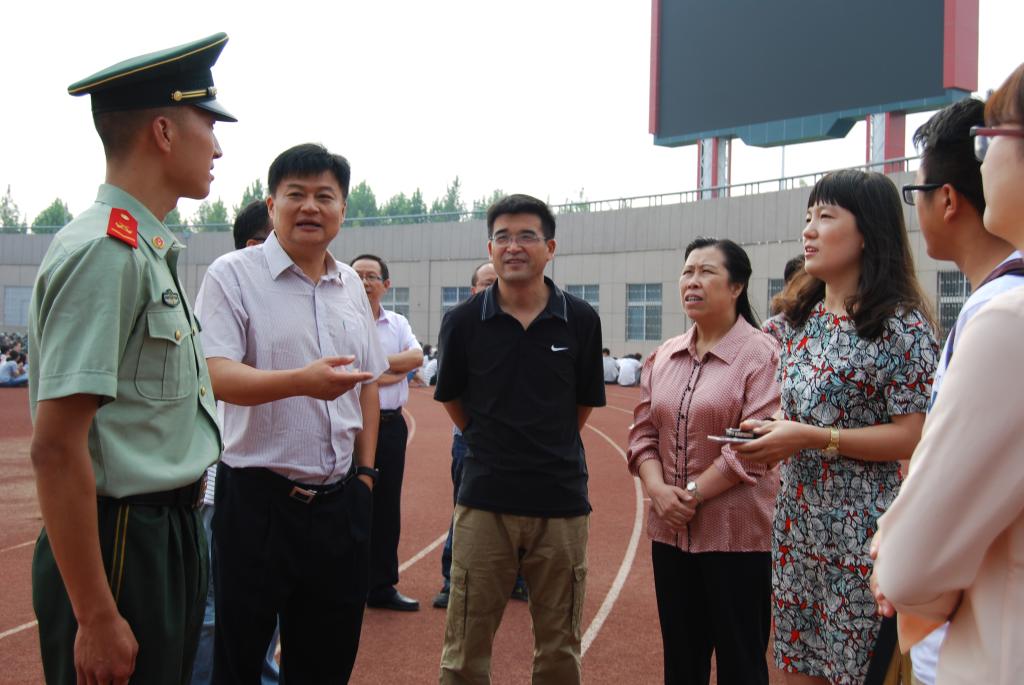 上午9点,孙书记一行人来到东体育场,向教官询问学院新生军训情况,希望教官对新生严格要求,让新生以饱满的状态迎接之后的大学生活,并对教官的辛勤付出表示感谢。领导老师鼓励同学们要勇于吃苦,坚持训练,通过军训培养坚强的意志和顽强的拼搏精神,让军训成为同学们大学生涯难忘的第一课。