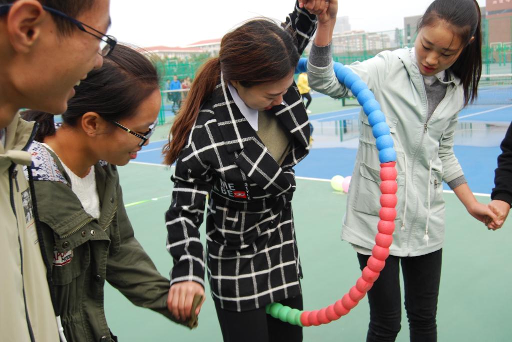 此次活动以寓教于乐的游戏为载体,由“火海逃生”、“安全锦标赛”、“绿色DIY”三大环节组成。在分组讨论后,各组分别进行组员自我介绍和小组展示。“火海逃生”环节通过模拟火灾场景,各组成员依次穿越障碍到达终点线并完成相应任务,考验新生在紧急情况下的应急自救能力,提高其自消防安全技能。在“安全锦标赛”中,各组成员齐心协力、相互配合,分别完成 “安全知识智答”、“穿越火线”、“隔空取物”等十余个趣味小游戏,用时最长小组进行安全小演练,在幽默诙谐的表演中增强了新生的安全知识。活动现场欢声笑语不断,气氛热烈。在“绿色DIY”环节中,各组成员变废为宝,制作寓意安全、环保的纪念物并进行展示。此外,活动过程中,由安检部成员扮演的“骗子”采用短信诈骗、借用手机等形式 “诈骗”,使新生通过亲身经历增强防骗意识。
