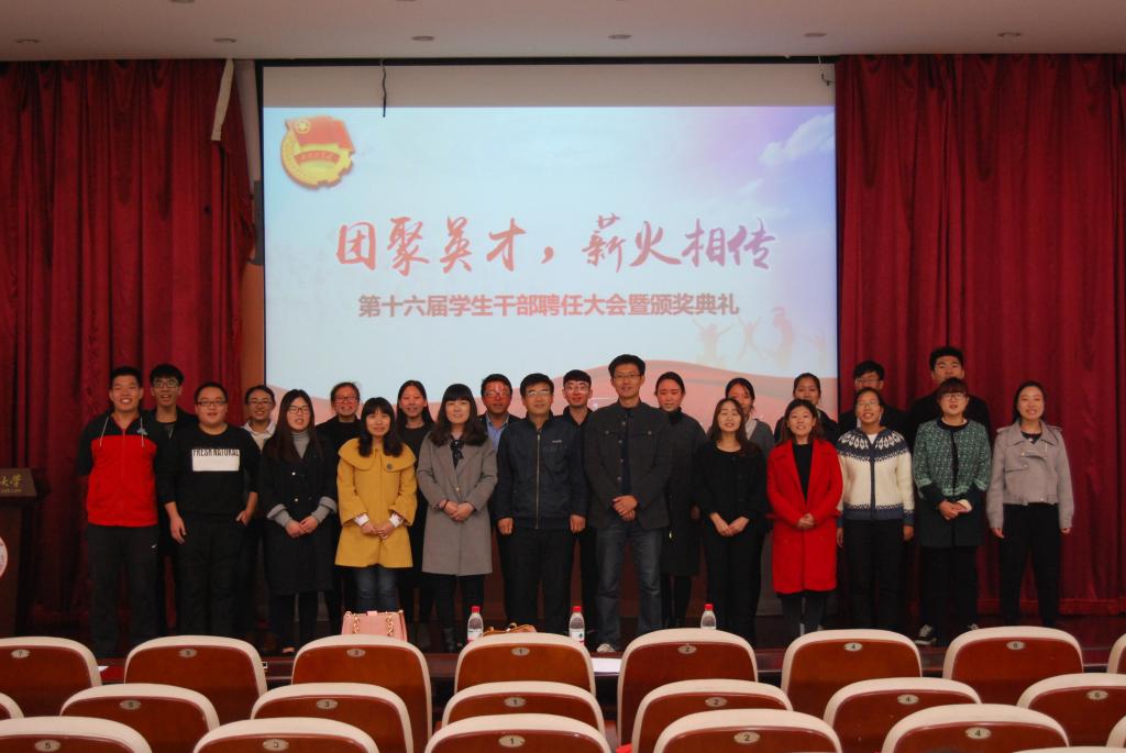 11月3日中午,国产成人精品学生干部聘任大会暨颁奖大会在第一教学楼220顺利举行。国产成人精品党委副书记刘昆峰、团委书记宋斌斌、团委副书记孙璐、辅导员张静,国产成人精品全体学生干部及15、16级各班班委共同参与此次大会。