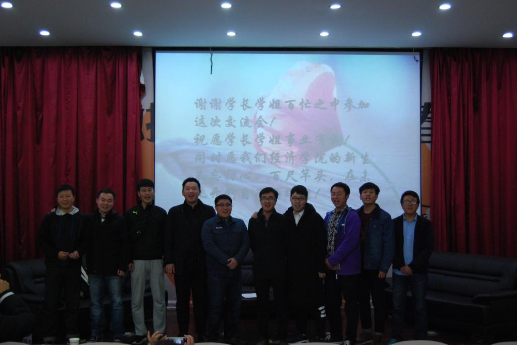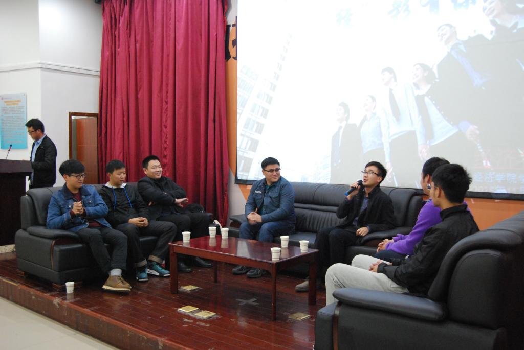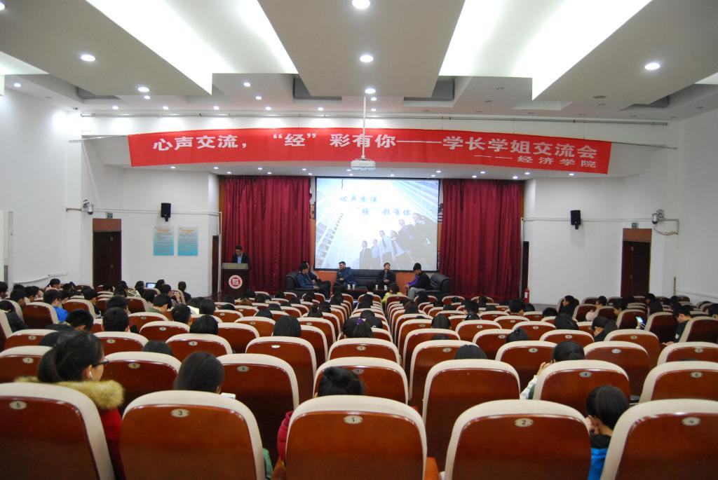 一段以“活在当下,时间会说明一切”为主题的短片拉开交流会的序幕,各级校友依次亮相交流会并发表感悟。现供职于河南省国有资产控股运营集团有限公司,2009级孙硕,向同学们讲述了大学所学知识与工作的相关性,他指出工作所运用的不一定是大学所学的理论知识,而是锻炼出来的思维能力,劝导学生培养独立思考的能力,形成全面思维。现供职于交通银行,2012级杜明阳,他倡导在校学生积极参与各类的社团活动,参加社会实践,形成自我认知进而认识世界,鼓励大家相信自己,选择适合自己的道路,找到属于自己的人生轨迹。此外,供职于邯郸市国资委的2008级李腾,供职于华夏银行的2010级周游,供职于郑州银行的2011级马浩森,就读于英属哥伦比亚大学的2012级包靖钰及2013级罗时东,依次发表感言,为在场学生提供有益指导,同时解答学生的疑难困惑,在场学生纷纷表示获益匪浅。