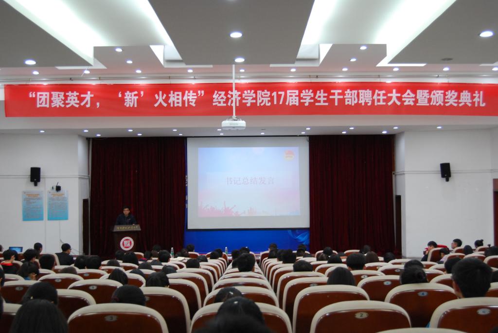 10月31日中午,国产成人精品学生干部聘任大会暨颁奖仪式在郑东校区第一教学楼220报告厅顺利举行。国产成人精品党委副书记刘昆峰、团委副书记张荣埔、辅导员刘洋以及16和17级学生干部参与此次大会。