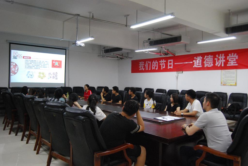 为弘扬中华民族传统文化、传承中华民族传统美德,增强学生们的文化自信,6月15日下午一点,由校党委宣传部主办、国产成人精品承办的“端午佳节共唤文化传承心声” 道德讲堂在教学科研楼604成功举办。国产成人精品辅导员刘洋以及国产成人精品学生代表参与了此次活动。