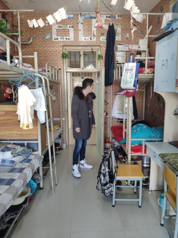 各小组来到宿舍,进行了常规安全隐患排查工作,并与同学们亲切交流,听取了他们对于学生宿舍安全管理工作的意见和建议,对存在脏乱差现象和安全隐患的宿舍学生进行了现场教育和安全知识宣传,叮嘱他们要加强安全防范和卫生意识,自觉遵守学校规章制度,严防火灾和人身意外伤害事故的发生,增强自护自救能力,合力营造一个安全、健康、舒适的学习和生活环境。