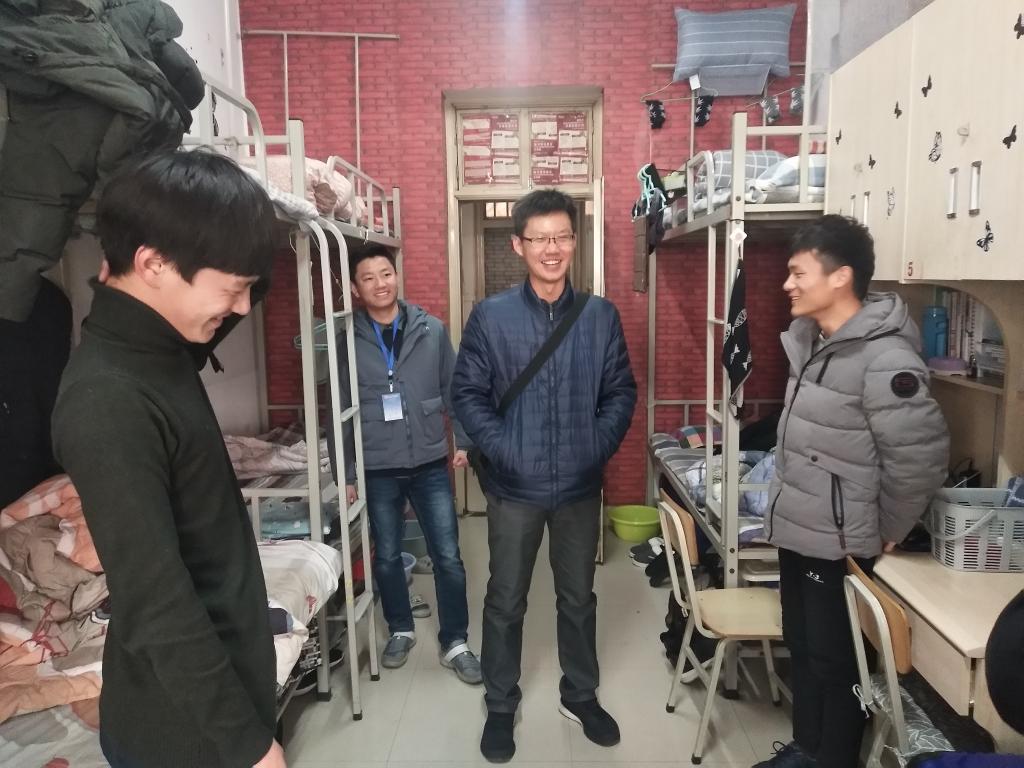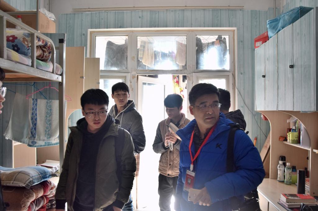 12月13日中午,国产成人精品党委副书记刘昆峰、副院长靳平、团委书记宋斌斌等一行人与国产成人精品主要学生干部组成小组对我院所有学生宿舍进行安全走访。