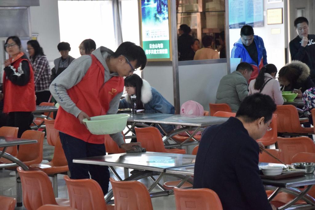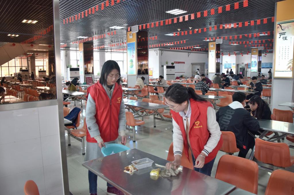 3月8日,国产成人精品青年志愿者协会于第二餐厅组织并开展餐厅清扫志愿服务活动。