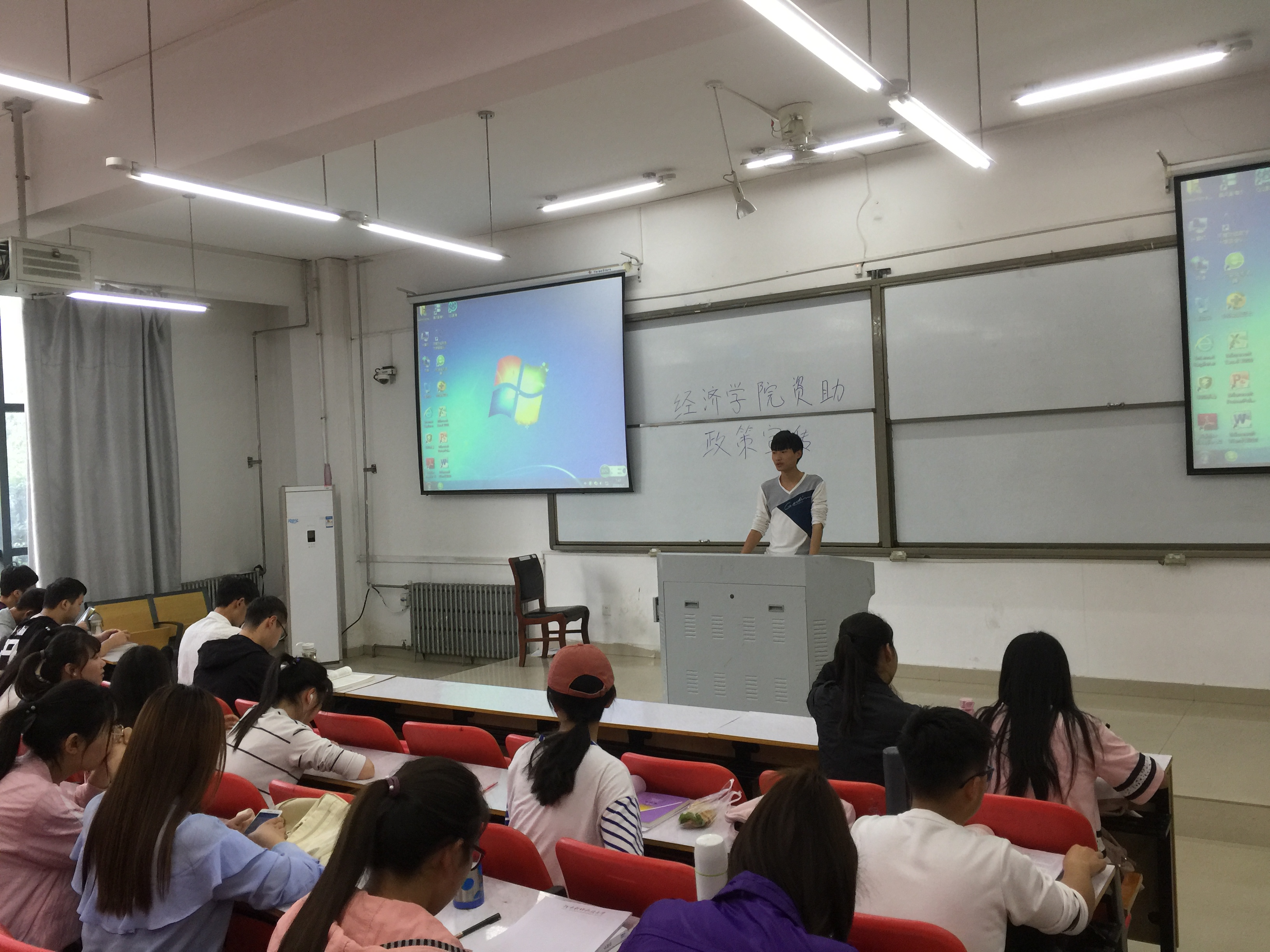 为加强对家庭经济困难学生资助政策的宣传工作,更好促进本院系学生资助管理工作的健康发展,国产成人精品于2017年10月13日开展了大学生资助政策宣讲活动,国产成人精品协理员、17级全体学生参与了此次活动。