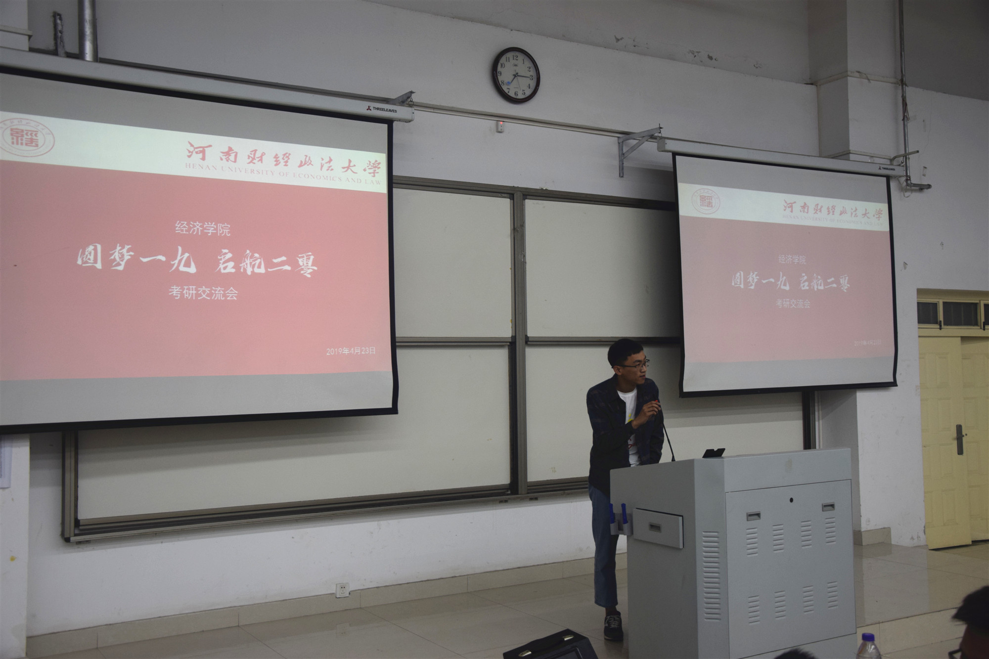 会议伊始,主持人致辞欢迎各领导老师和学生的到来,宣布活动开始。刘方首先祝贺19考研学子取得的优异成绩。随后,六位分别考取包括首都经济贸易大学、厦门大学、中南财经政法大学、福州大学和兰州财经大学在内的应届毕业生和一位以超过400的高分考取对外经济贸易大学的二战学生诉说考研心路历程。他们以自己考研的亲身经历给大家现身讲解,并提醒大家首先要整体把握近几年考研趋势,保持积极健康的心态,而后再处理细节,逐个击破,真正做到考研方向不选错,考研知识不漏过。朱红恒就前沿的考研形式,严峻的就业压力,增强考研信心等方面提出了自己的见解,并对参加考研的同学给予最大的鼓励与期待。交流会气氛融洽,老师和学长学姐针对在场同学的疑问耐心给予解析并为同学们送上祝福。