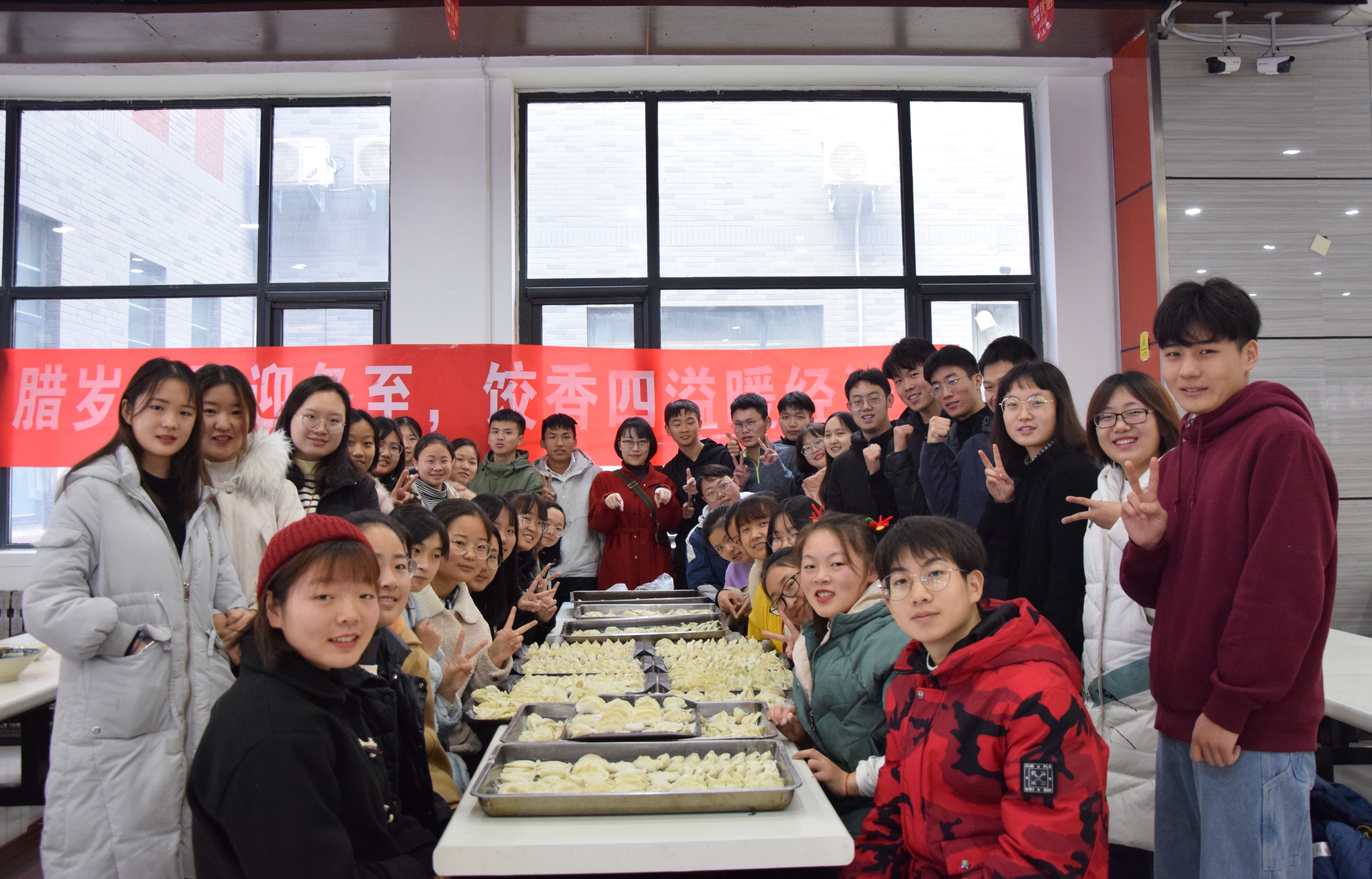 参加活动的同学分三组进行包饺子比赛,比赛氛围温馨,三组同学齐心协力创意十足,吸引了餐厅的工作人员为同学们展示自己的独门技巧。魏梦媛与同学们一起包饺子感受冬至独特的乐趣。游戏环节中,各组同学开动脑筋寻找九画汉字。整个活动妙趣横生,令人心生暖意。
