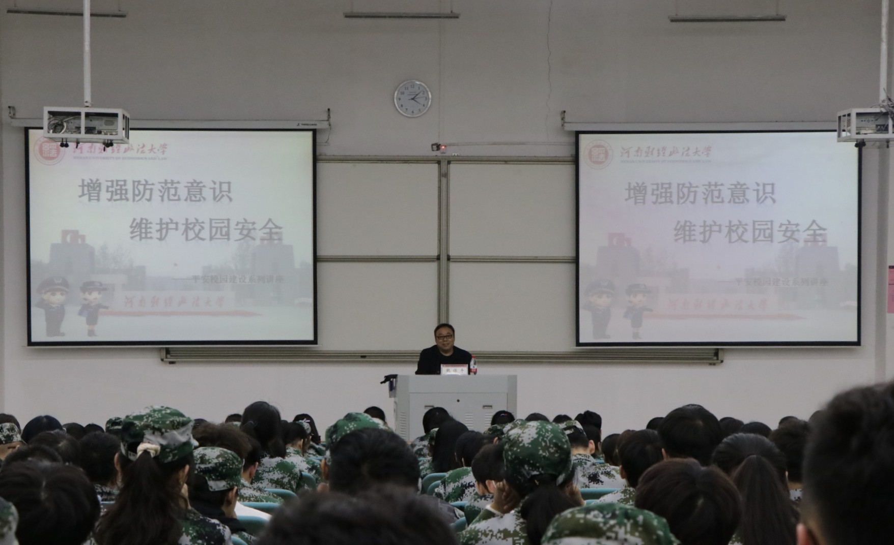 魏处长首先向同学们介绍了短信诈骗、微信诈骗、电话诈骗等一系列网络信息诈骗手段及遭遇此类诈骗的正确应对方法。接着,他又向大家详细讲解了校园消防安全、防范传销和毒品、严防宗教渗透等多方面内容。并通过列举典型高校真实案例,让同学们对隐藏在身边的安全隐患提高防范。最后,魏处长再次提醒同学们在生活中要时刻提高警惕,努力保护好个人及他人安全。