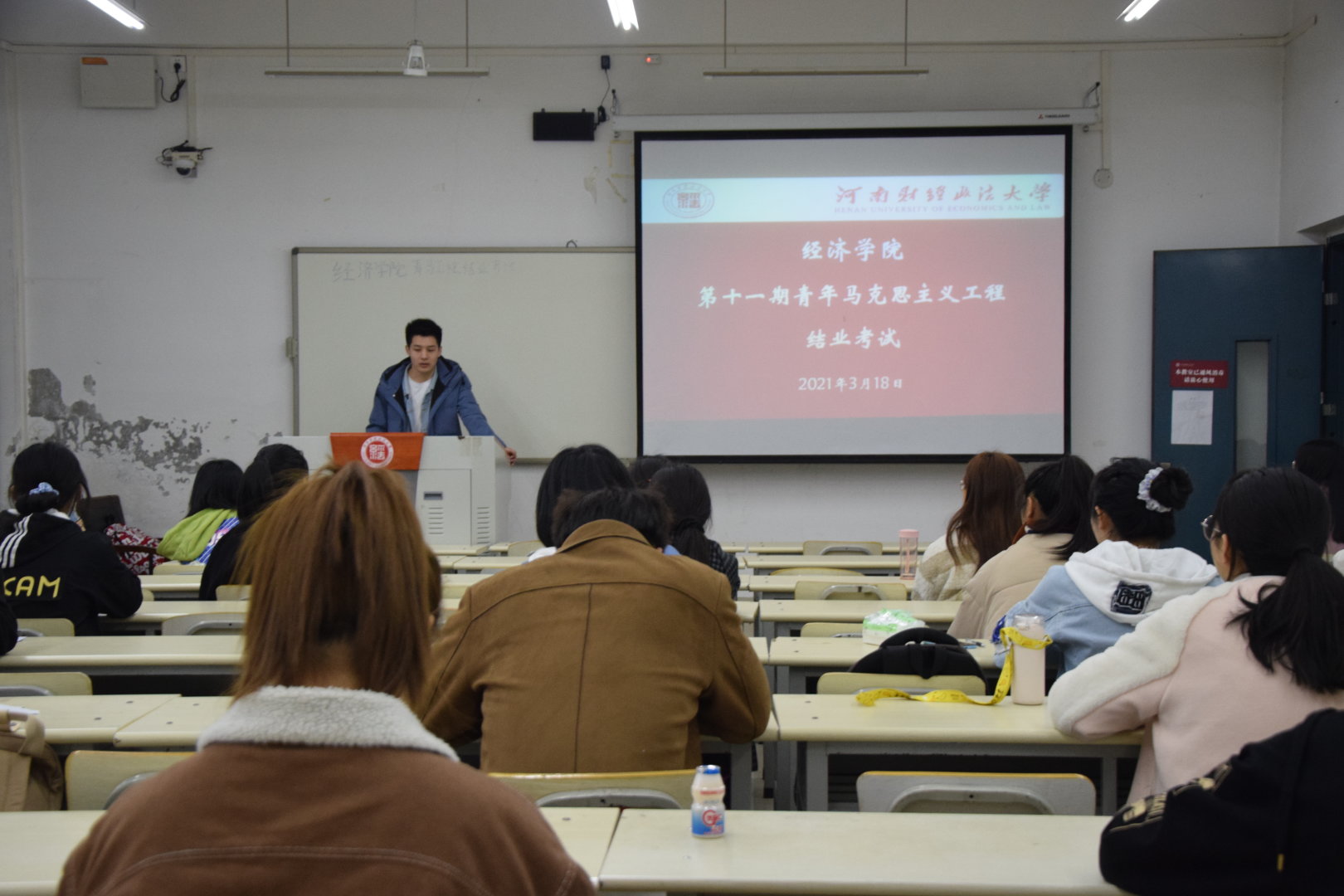 为检验同学们对于青马知识的掌握程度,国产成人精品于三月十八日在教一105举行了第十一期青年马克思主义工程结业考试。