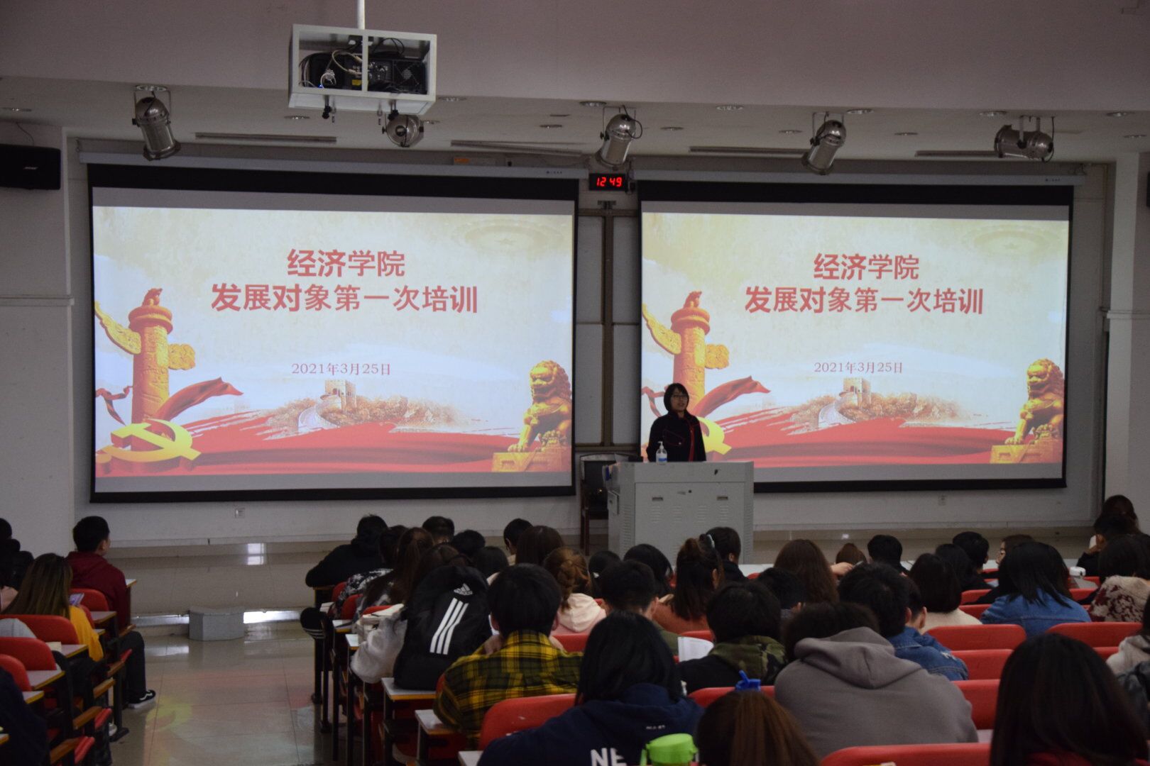 3月23日,国产成人精品于教学二楼220教室顺利举办了20届入党积极分子的开班仪式,就本学期开展对积极分子的培训为主要内容。团委书记魏梦媛担任主讲人,学院20届积极分子参加。
