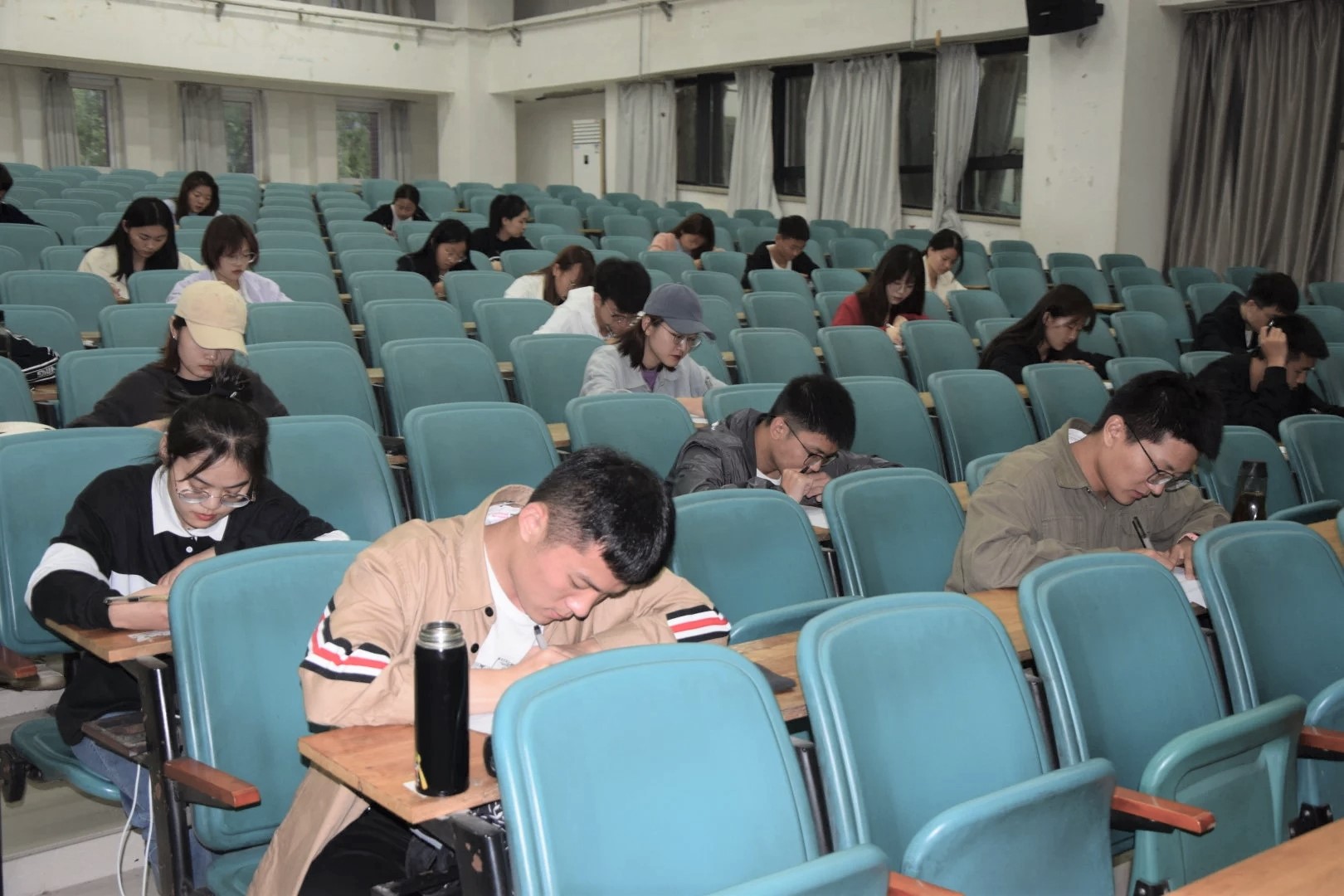 参加笔试的有各个部门的学生干部,同学们分散而坐。考试过程中考场秩序井然,同学们认真答题、自我检测。考试结束后考生及时交卷,有序离开考场。