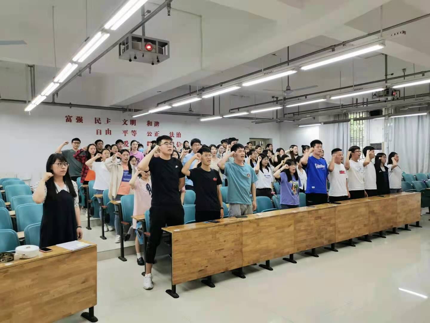 在本次活动中,魏梦媛首先向大家强调了要充分认识开展本次活动的重要意义。她指出,2021年是中国共产党成立100周年,100年来中国共产党团结带领全国各族人民顽强拼搏、接续奋斗,取得了举世瞩目的伟大成就,中华民族迎来了从站起来、富起来到强起来的伟大飞跃,迎来了实现中华民族伟大复兴的光明前景。因此在“七一”来临前夕,组织开展新党员入党宣誓和党员重温入党誓词活动,具有十分重要的意义。接着,由她担任领誓人,面向党旗集体起立庄严宣誓。活动最后,她指出广大学生党员要严格律己,接力奋斗,用行动为实现中华民族伟大复兴不懈努力。