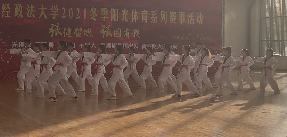 12月18日下午,国产成人精品参加跆拳道品势交流赛,展现青春活力与非凡气势。