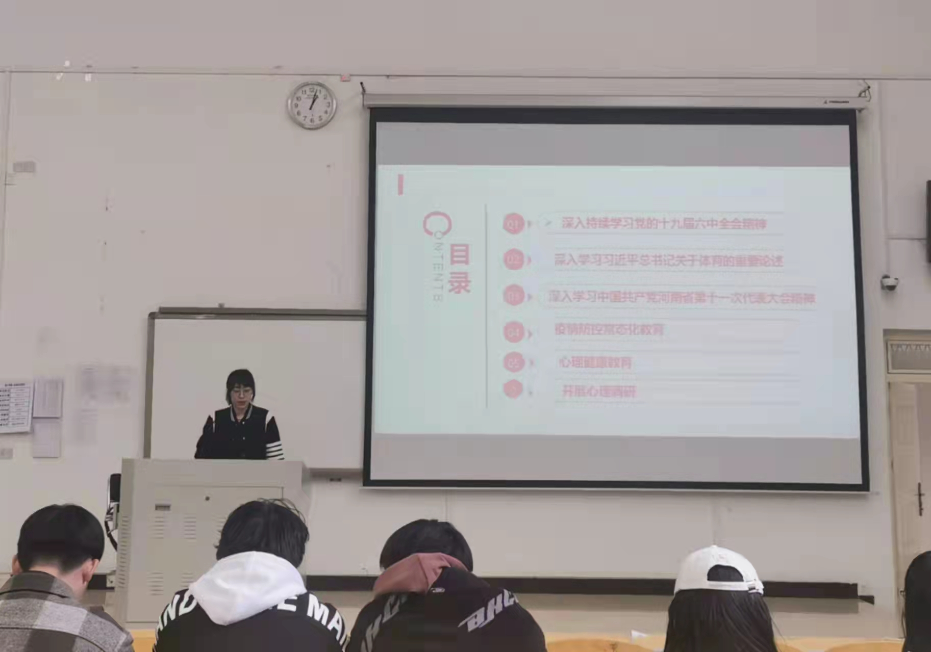 本次春季思政第一课,共包含六项主要内容。一、深入学习党的十九届六中全会精神。教育引导广大学生要把学习贯彻党的十九届六中全会精神作为一项重大政治任务,激励学生在新时代新征程上为争取更大荣光贡献力量。二、学习习近平总书记关于体育的重要论述。学院结合北京2022年冬奥会、冬残奥会等体育盛会,教育学生学习贯彻习近平总书记关于体育的重要论述,引导学生树立健康第一的理念。三、学习中国共产党河南省第十一次代表大会精神。通过传达省第十一次党代会精神,教育广大学子将信心和决心凝集到推动现代化河南建设上来,为奋力谱写新时代中原更加出彩的绚丽篇章贡献力量。四、开展疫情防控常态化教育。从而不断增强学生自我防范意识和防护能力,自觉遵守、积极配合,共同维护好学校教育教学秩序。五、开展心理健康教育。围绕“开学综合症”“疫后综合症”,向学生讲授了心理健康调适方法;通过了解学生的心理健康状况和学习生活情况,对因疫情暂缓返校和在校隔离学生开展了心理疏导。六、开展新学期思想调研。通过向学生下发问卷的形式开展了主题为“新学期、新起点、新成绩”的思想调研,并形成调研报告进行存档。