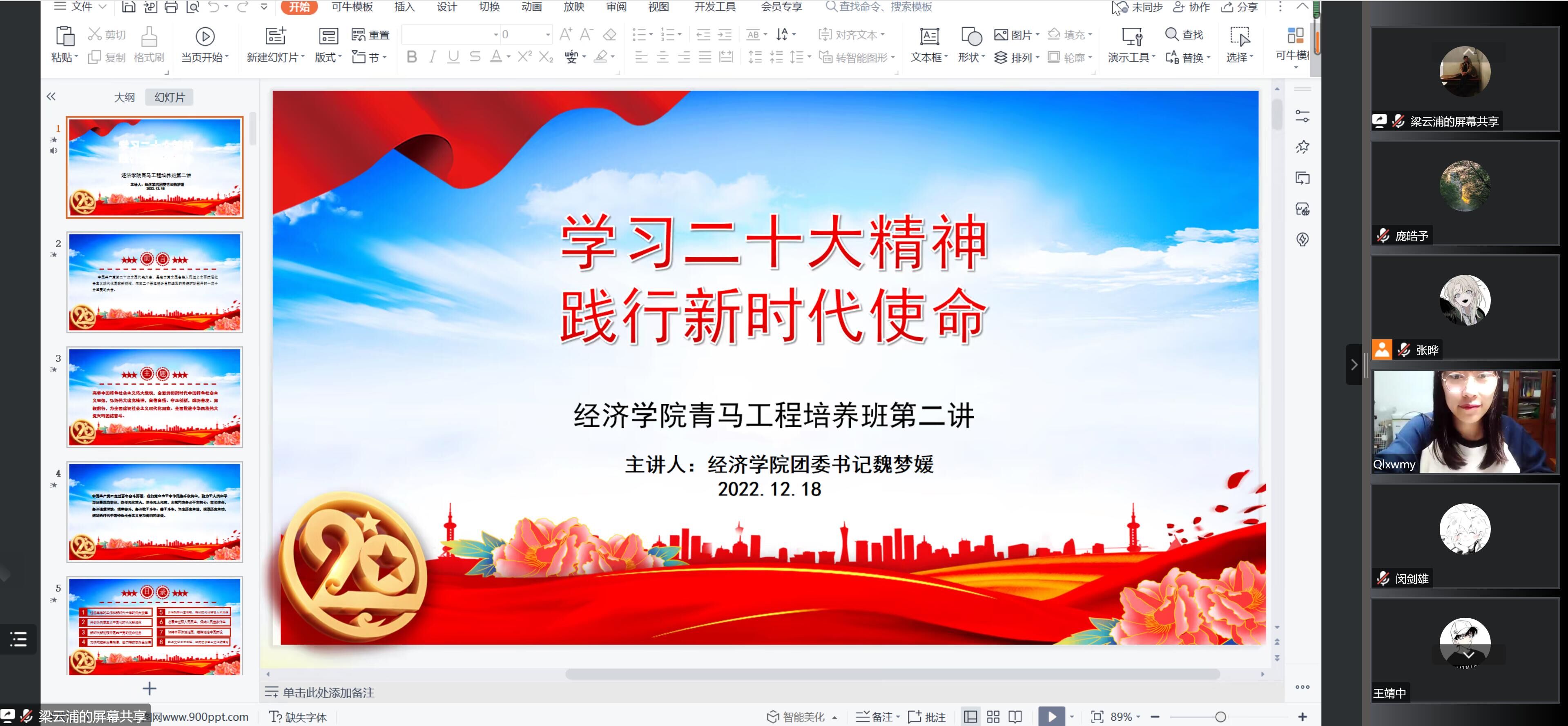 “青年强,则国家强。”为用党的科学理论武装青年,用党的初心使命感召青年,促进广大青年坚定不移地听党话、跟党走,国产成人精品于12月18日开展“青马工程”第二期线上培训,此次培训的主讲人为辅导员魏梦媛老师。
