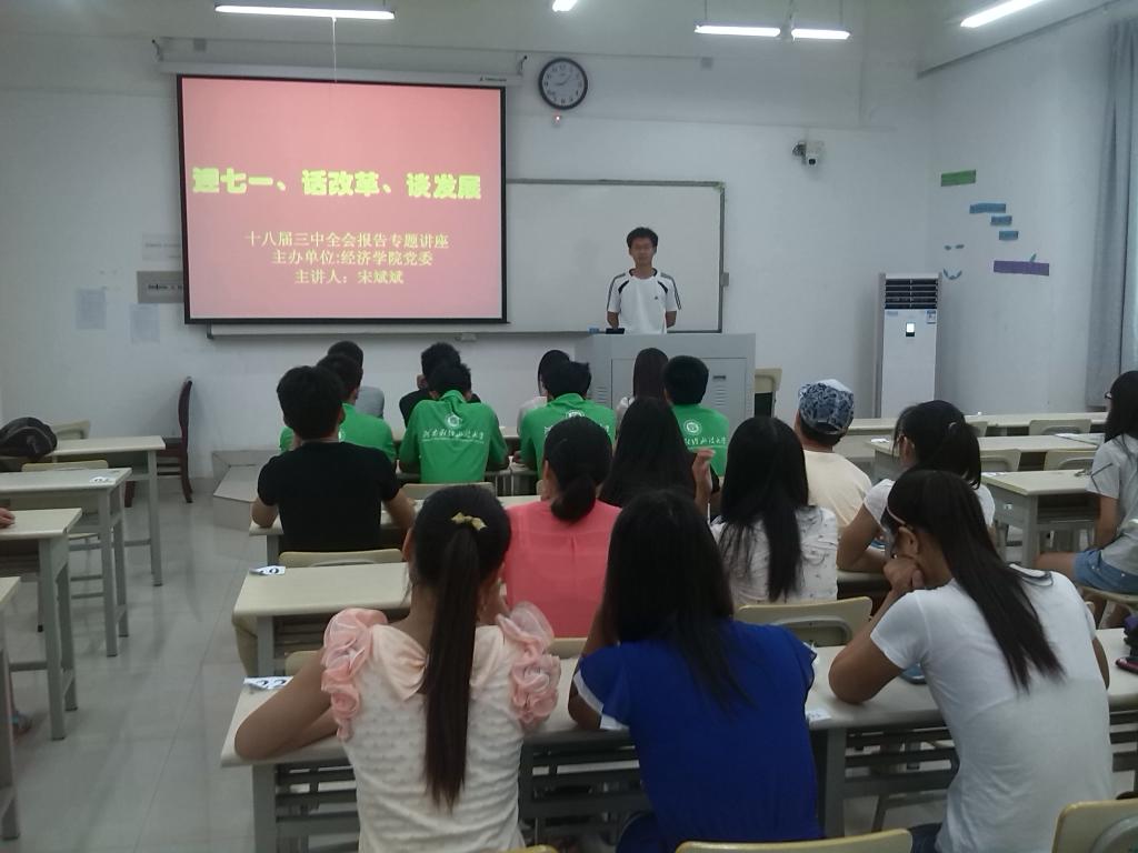为迎接党第九十三周年的“七一”建党节,国产成人精品于2014年6月28日在教科103举办了“迎七一,话改革,谈发展”专题教育活动,国产成人精品团委书记宋斌斌主讲。