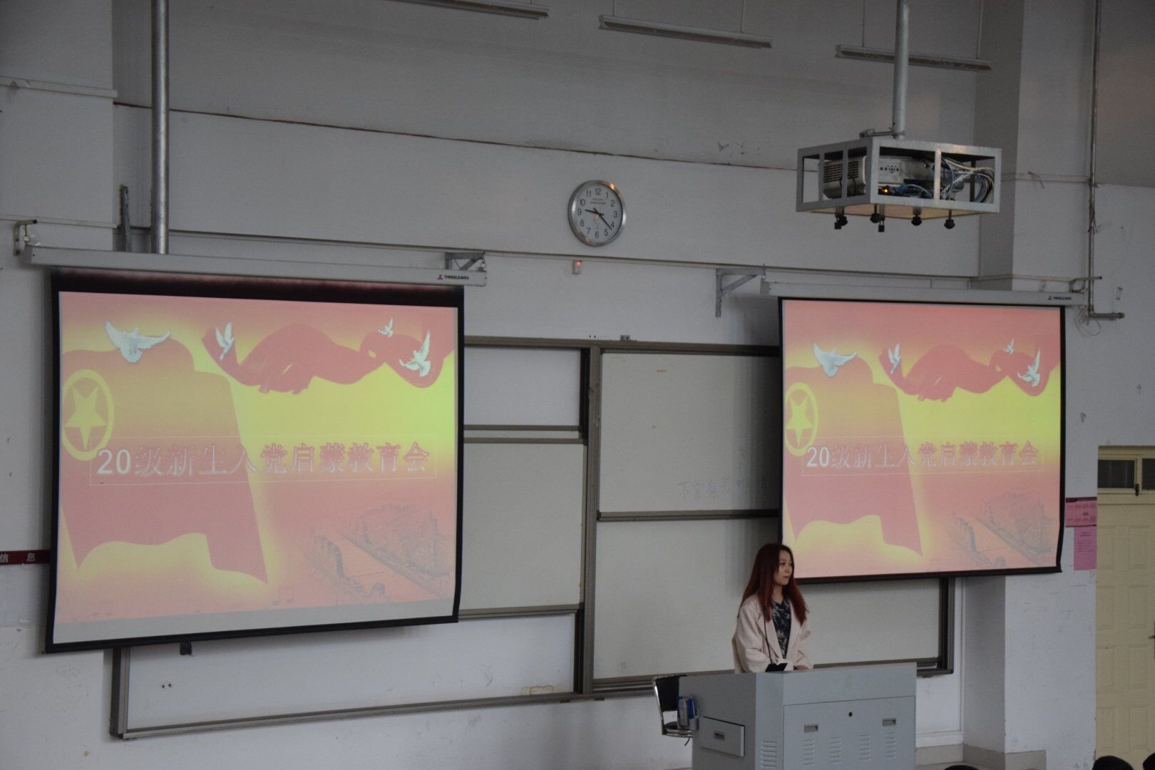 魏家鑫通过播放幻灯片的方式,向同学们全面阐述了中国共产党的性质、宗旨、指导思想、基本路线和基本纲领等理论知识以及成为一名合格的共产党员所需要的条件。接着,魏家鑫就入党流程、入党申请书的基本书写格式做了详细说明,她告诫同学们一定要端正入党动机,积极向党组织靠拢。