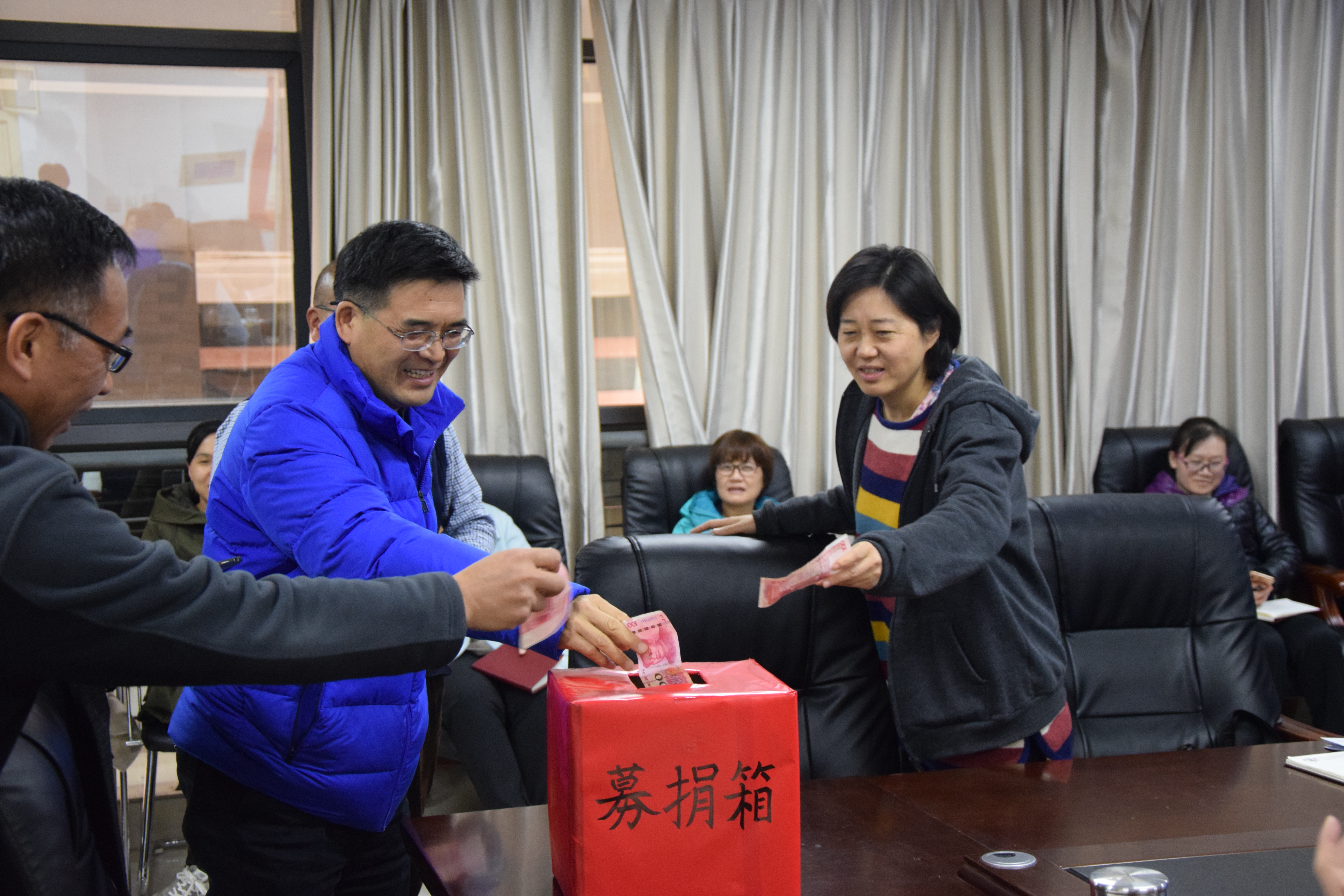 11月19日下午2点30分,国产成人精品于教学科研楼604会议室举办募捐大会,我院院长朱红恒、副院长刘方、副院长靳平、党委副书记刘昆峰等参与此次募捐大会。