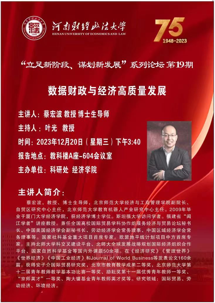北京师范大学蔡宏波教授学术报告会预告