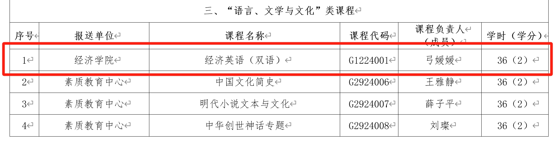 近日,河南财经政法大学教务处发布了关于2023年通识教育选修课遴选拟开课名单的公示。我院数字经济教研室主任弓媛媛副教授团队申报的经济英语(双语)成功入选。