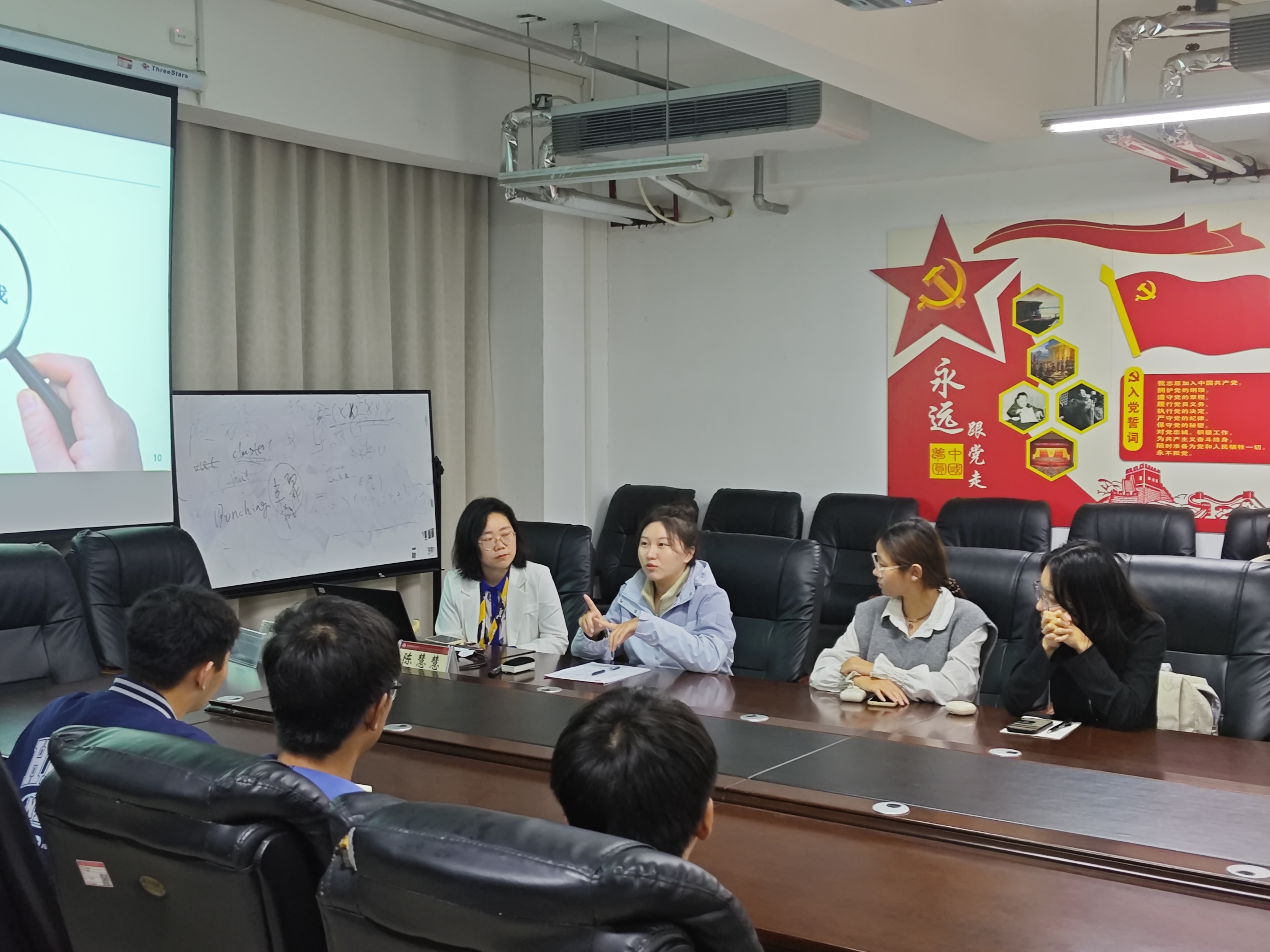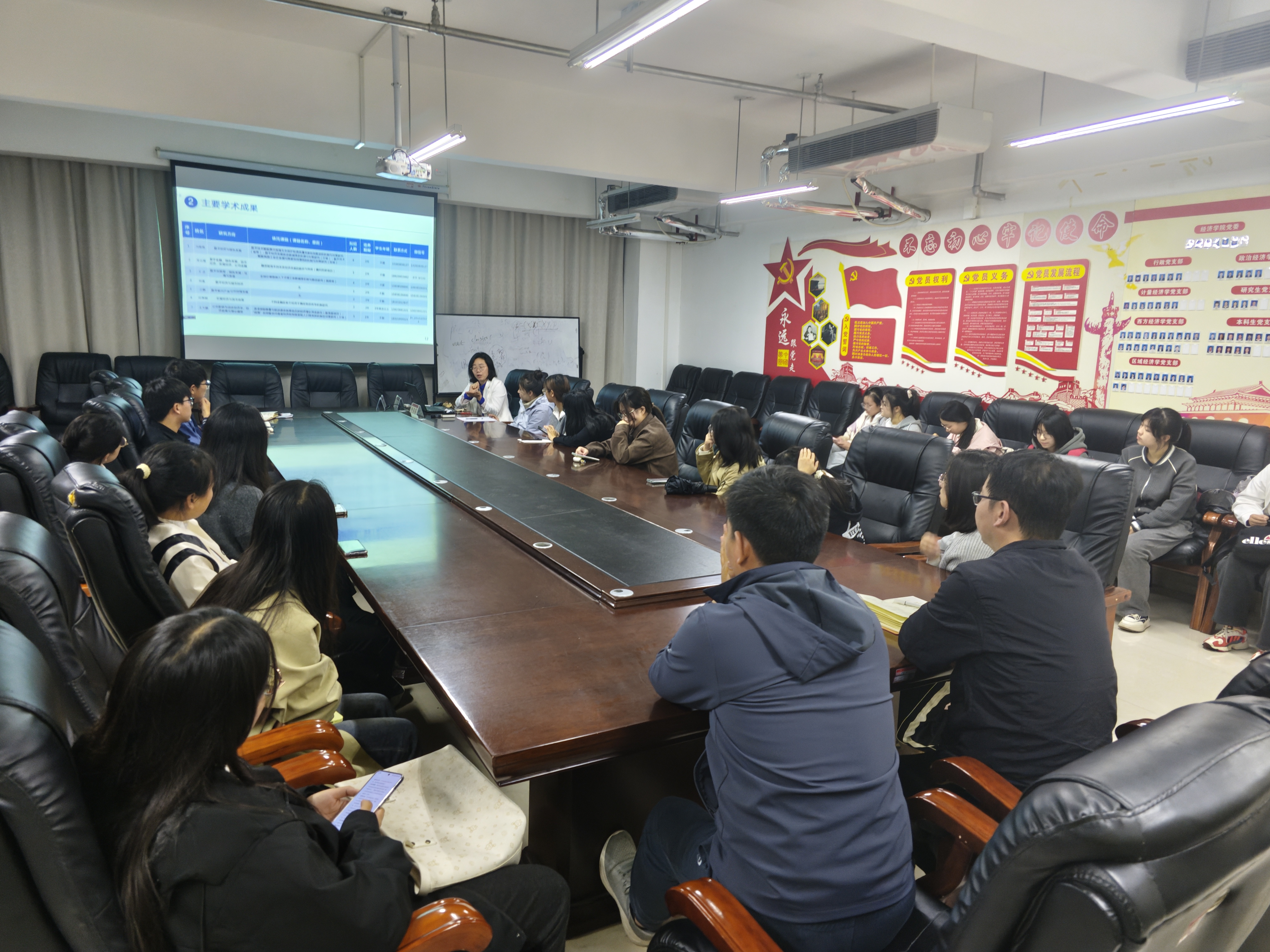 在指导经验分享环节,弓院长从本科毕业论文指导、学科竞赛指导、学术论文发表三方面分享了指导学生做科研的经历以及学生们在留学申请、升学就业方面的竞争力。大三学生梁高扬分享了在陈慧慧教授指导下进行科研的经历,鼓励学弟学妹们要持之以恒,抓住机会,勇于探索未知领域的知识。
