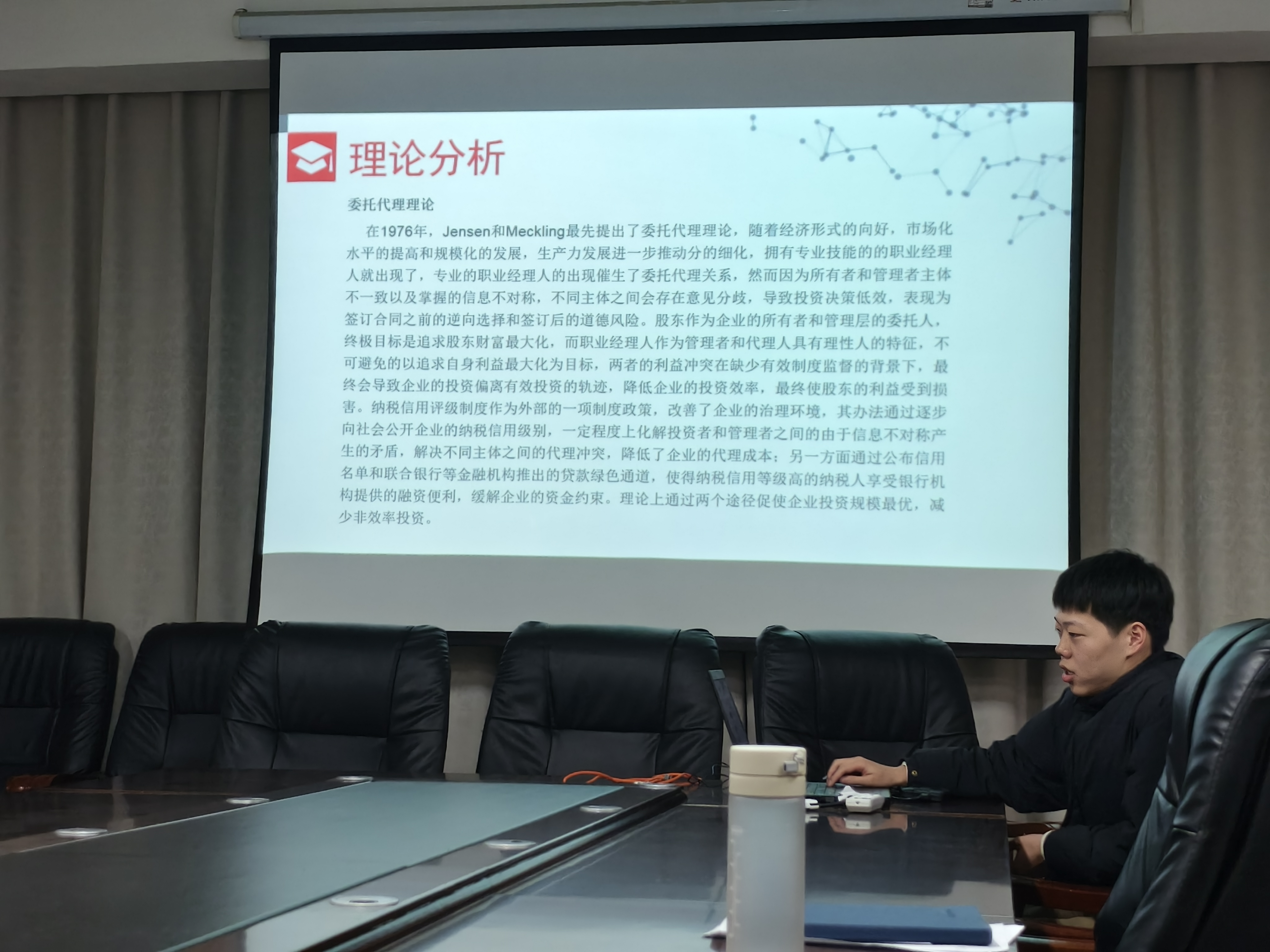 11月27日,国产成人精品第四期经研工作坊在教科楼A座604举行。本次工作坊聚焦“技术关联”和“纳税信用评级”两个研究主题。2023级研究生胡长春、陶正豪同学宣讲了工作论文。副院长王灏主持工作坊,学院副教授王小叶博士进行了点评。师生就论文选题、文字表述、逻辑关联、实证方法等进行了交流。会后同学们就完善工作坊的形式以及如何更好地开展科研发表了的看法。