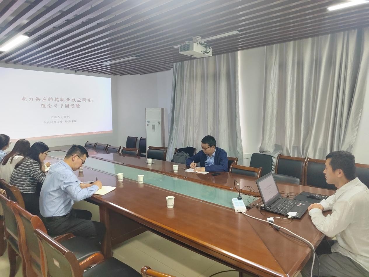 俞剑教授学术报告主题为“电力供应的稳就业效应研究--理论与中国经验”。该研究从中国电力供给侧和需求侧现实背景出发,通过建立包含电力供应的企业生产理论模型,分析电力供应对企业就业的影响效应和机制。在学术报告后,学院师生就研究内容与俞剑教授进行了丰富地探讨,并就学生培养进行了经验交流。